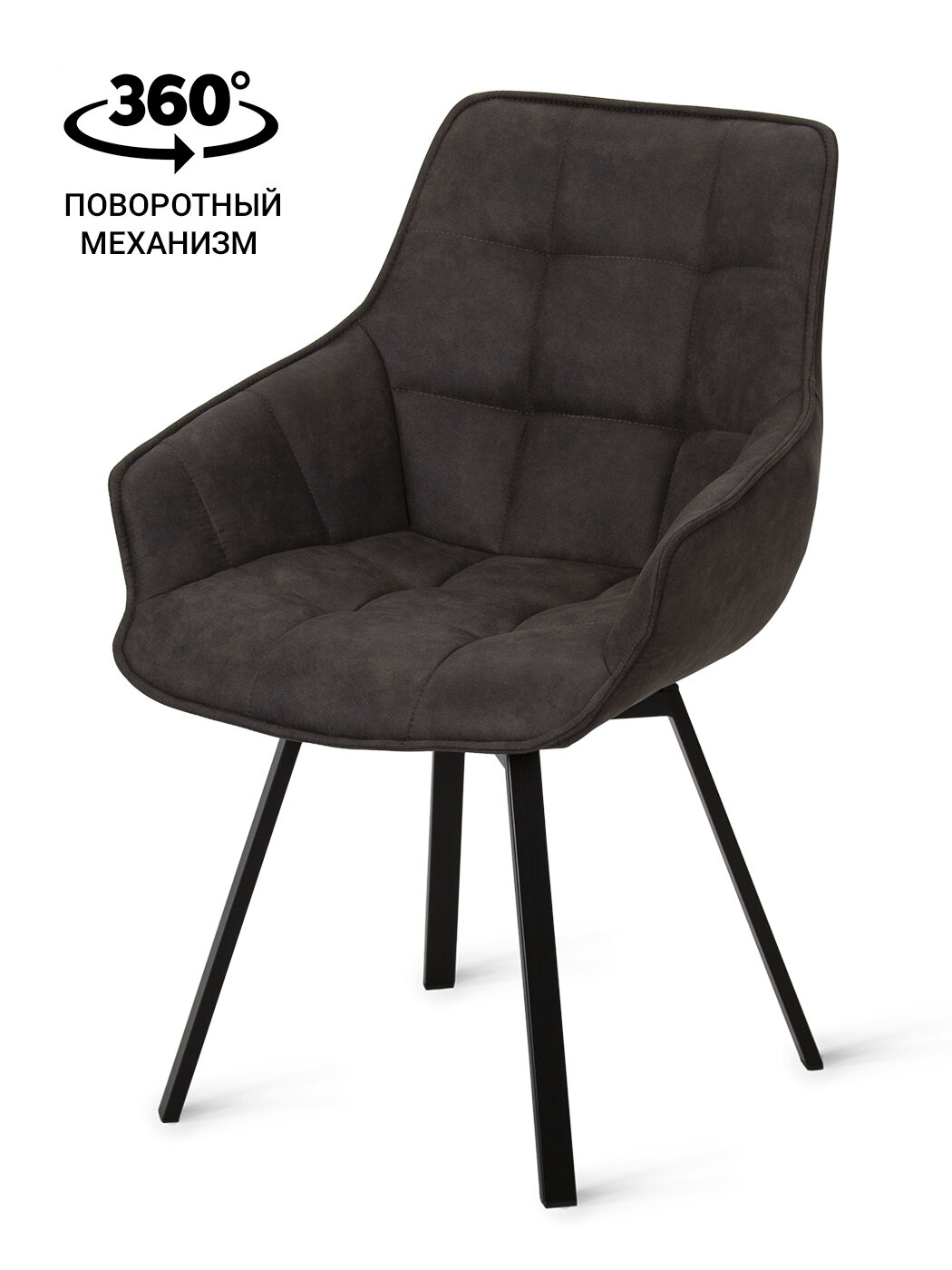 Стул B815-m SMOKE VL BK (2 шт.) с поворотным механизмом для кухни черные ножки, велюр серо-коричневый, 56х61х85 см
