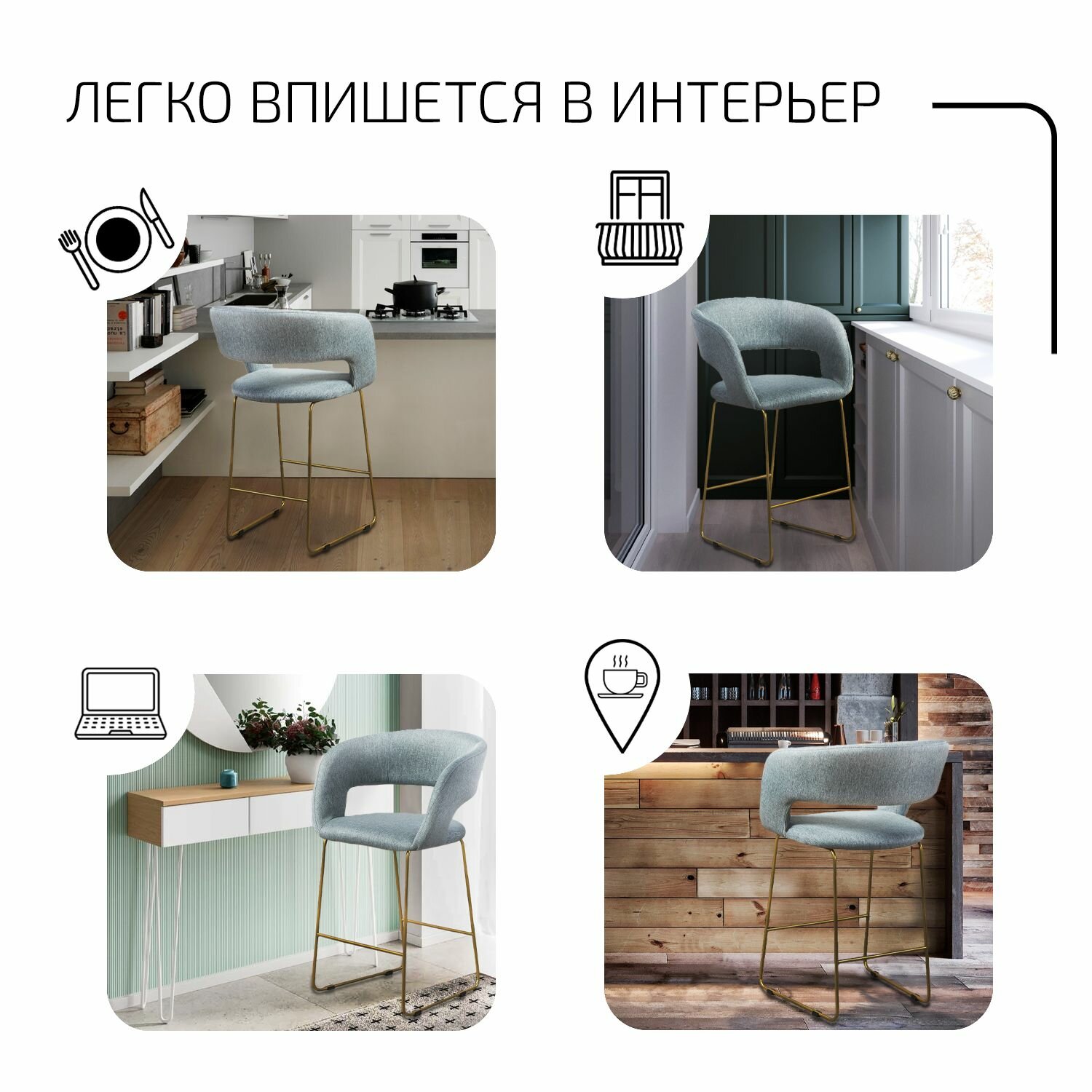СохранитьСтул полубарный, барный стул со спинкой для кухни Hugs светло-серый Линк золото интересное: