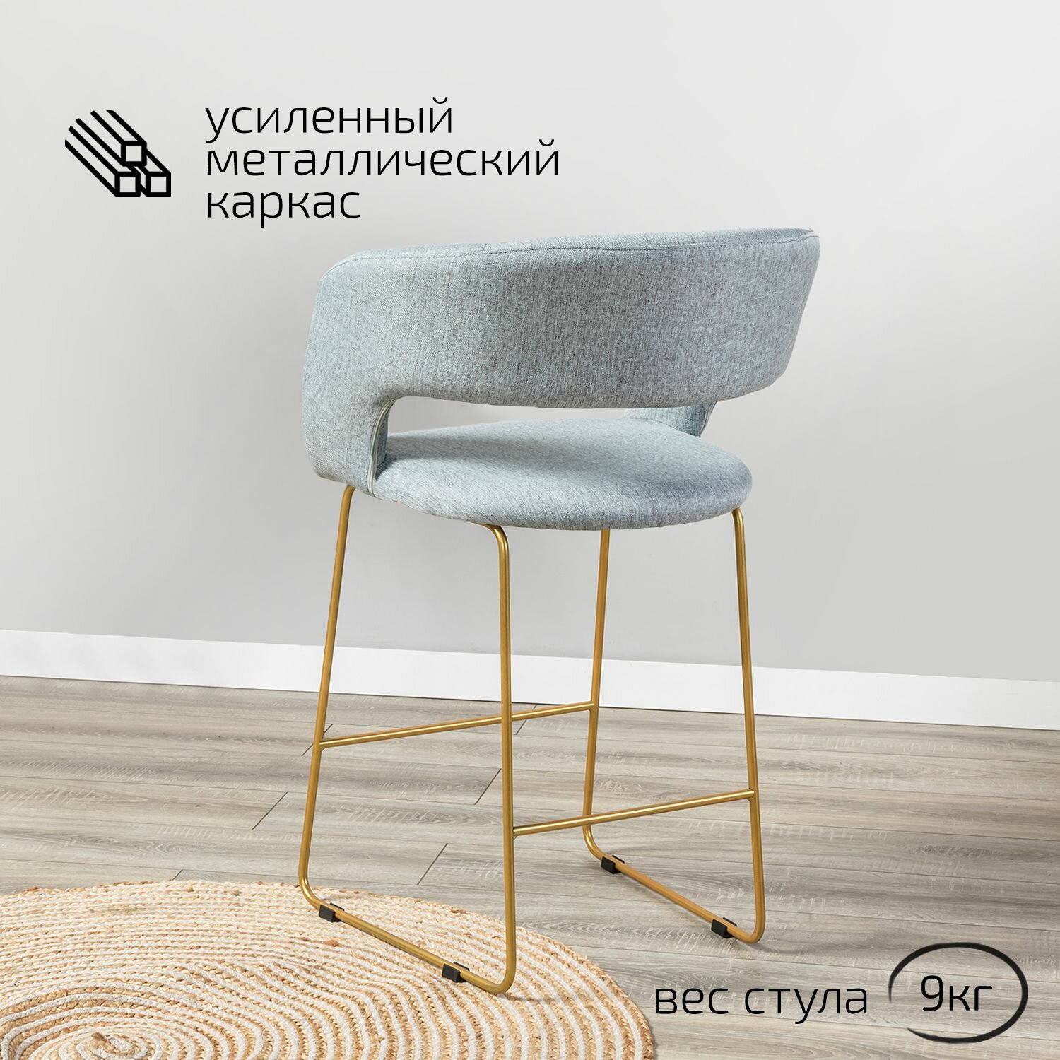 Стул полубарный, барный стул со спинкой для кухни Hugs светло-серый + ножки золото линк