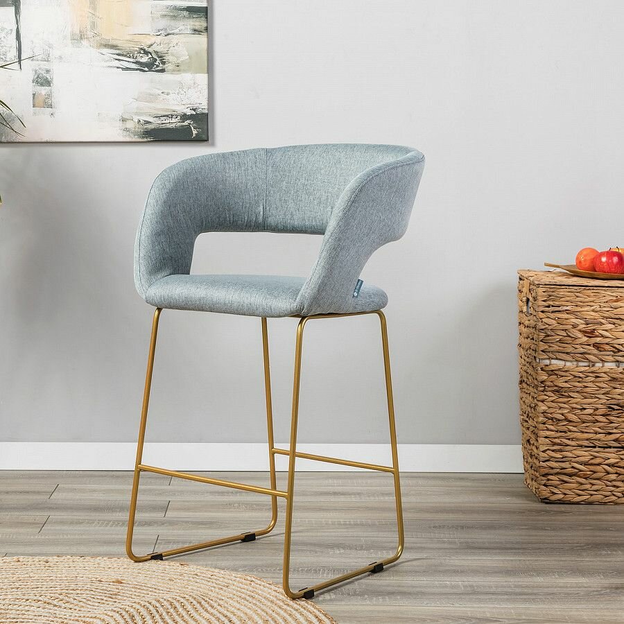 Стул полубарный, барный стул со спинкой для кухни Lars БлюАрт Линк Золотой