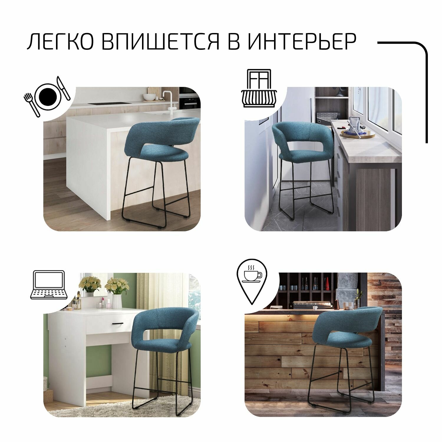 СохранитьСтул полубарный, барный стул со спинкой для кухни Hugs синий линк интересное: