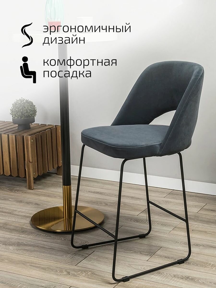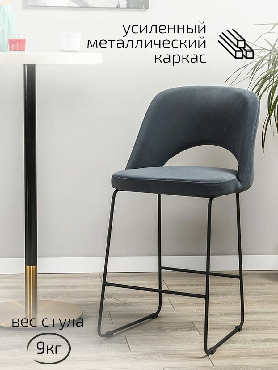 Стул полубарный, барный стул со спинкой для кухни Hugs синий линк