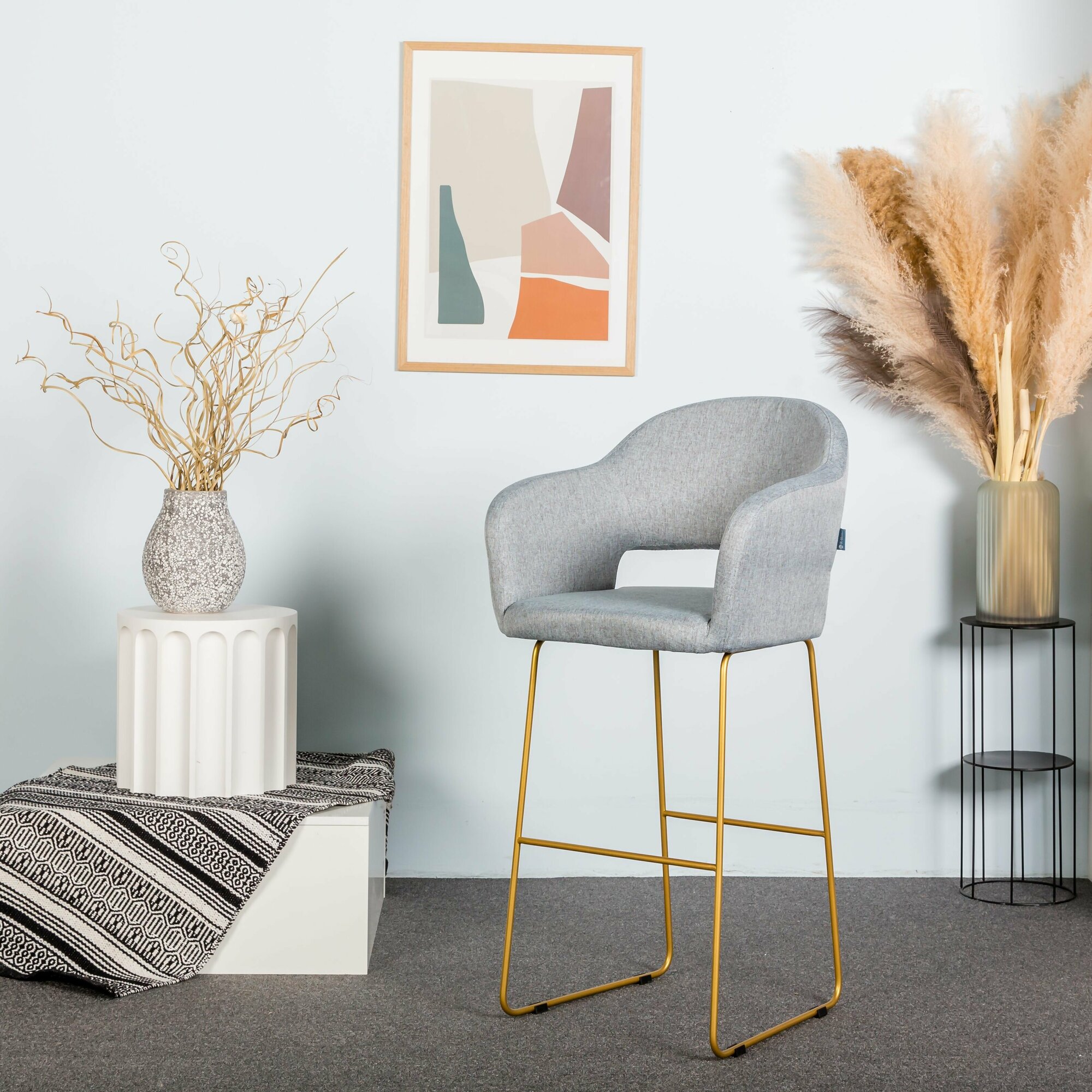 Стул полубарный, барный стул со спинкой для кухни Hugs светло-серый Линк золото