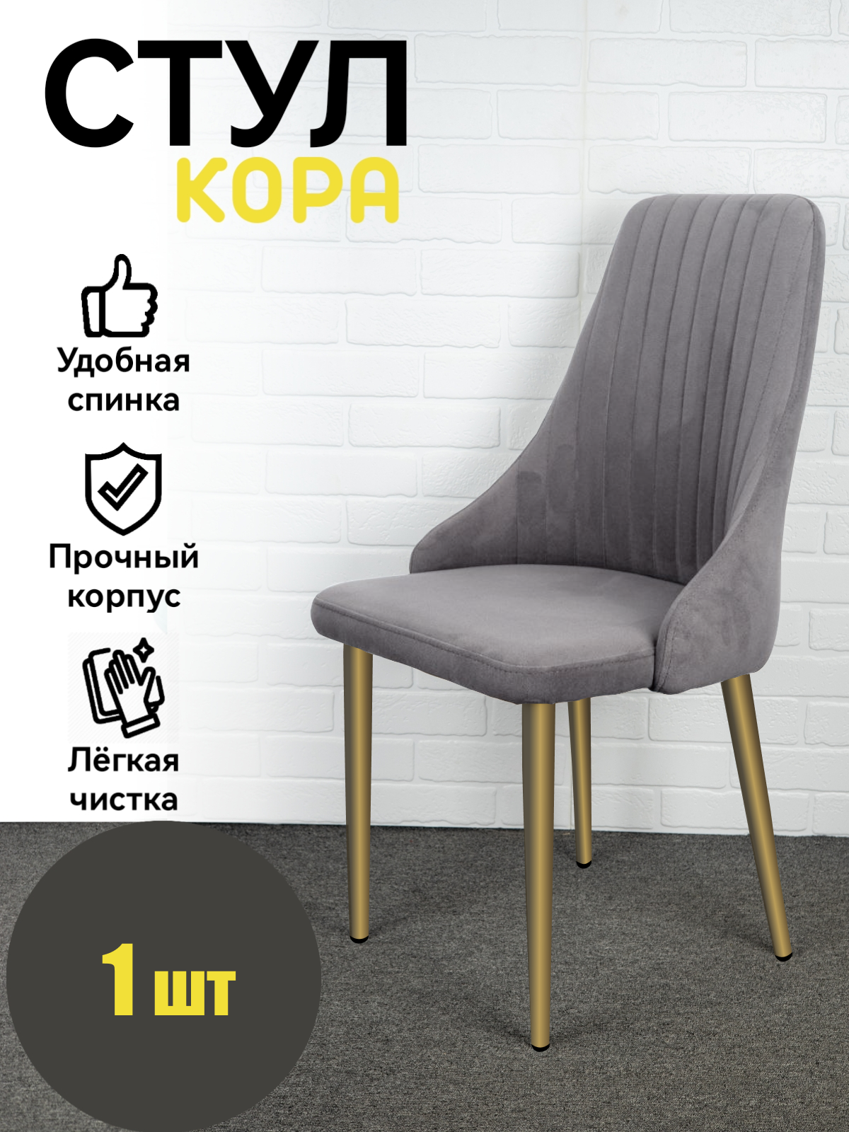 Стул "Кора" Azzurro mebel, 1 шт, антивандальный велюр, серый, золотистые ножки