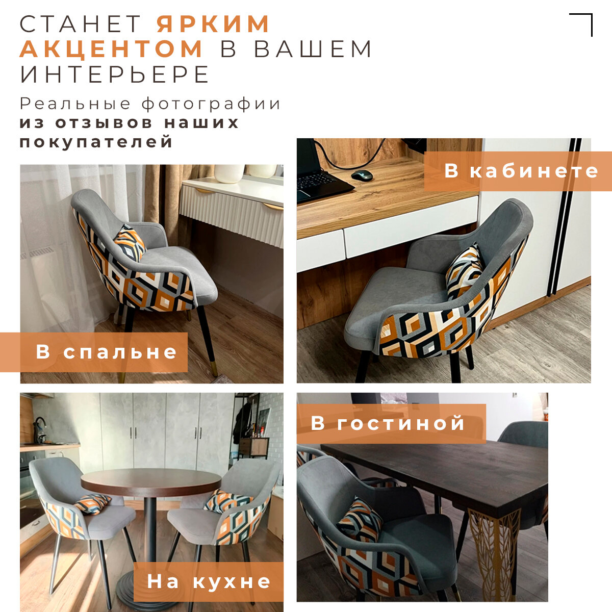 Стул кухонный мягкий со спинкой дизайнерский велюр ERGA серый черные ножки 2 шт интересное: