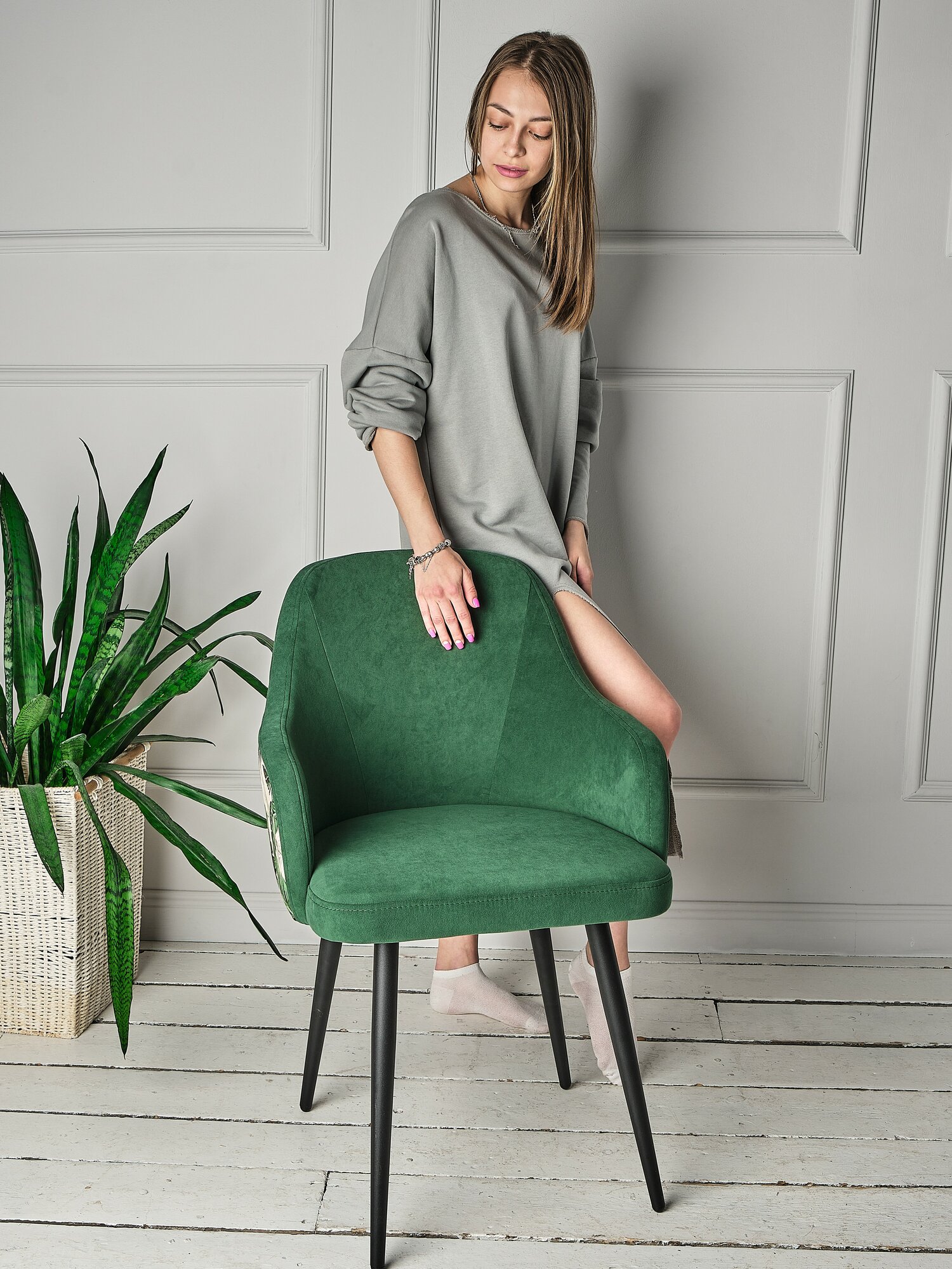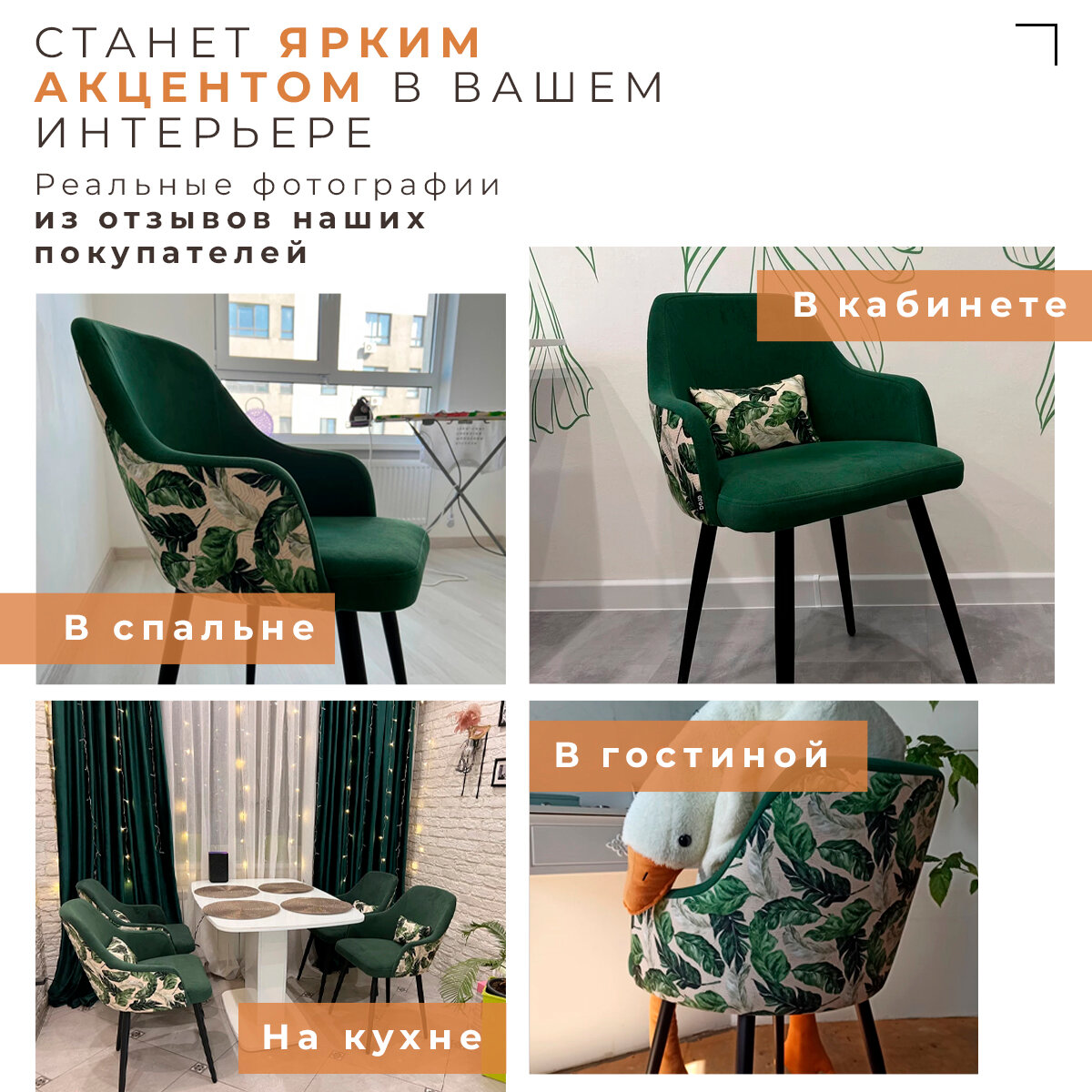 Стул кухонный мягкий со спинкой дизайнерский велюр ERGA зеленый листья черные ножки 2 шт интересное: