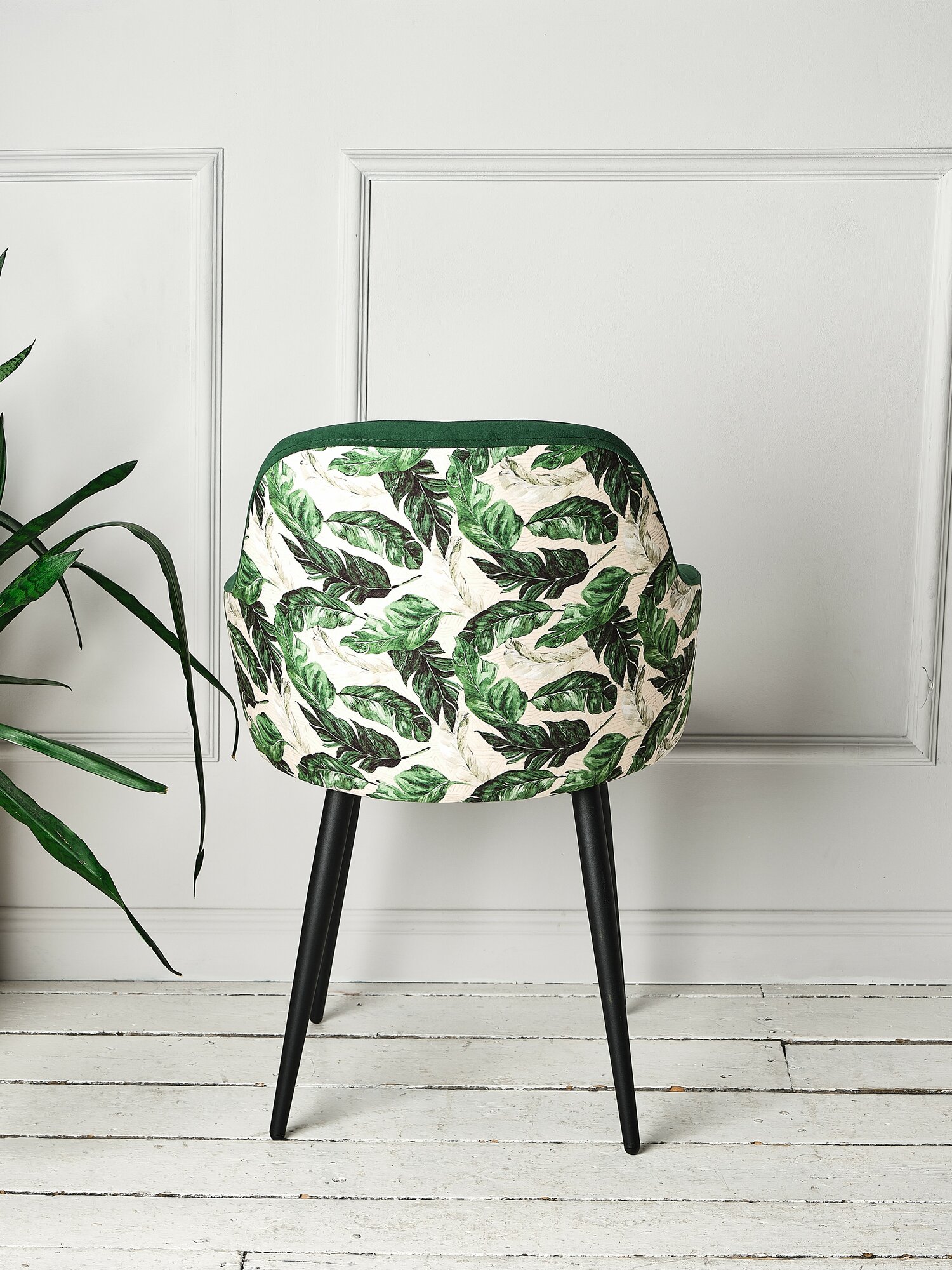 Купить Стул кухонный мягкий со спинкой дизайнерский велюр ERGA зеленый листья черные ножки 2 шт
