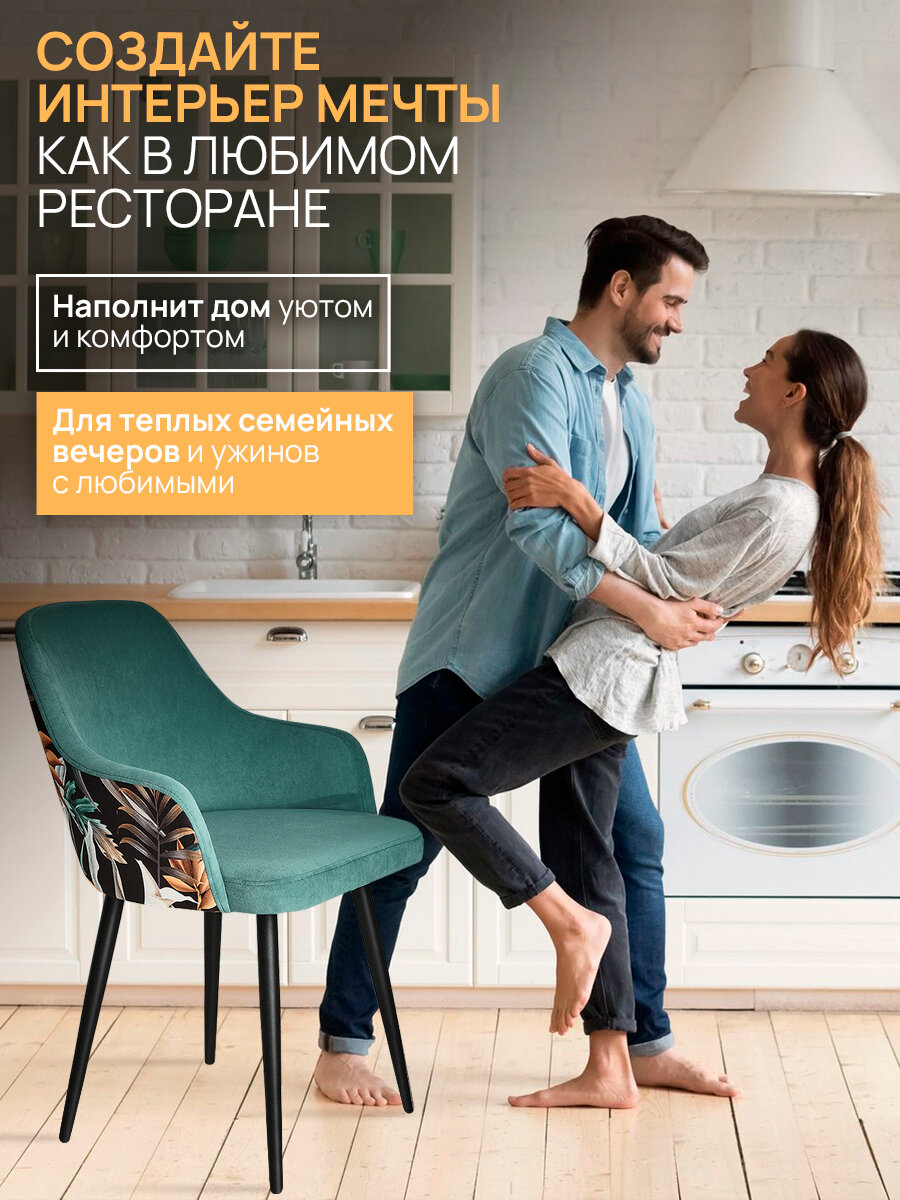 Стул кухонный мягкий с спинкой ERGA изумрудный велюр, ножки черные 2 шт интересное: