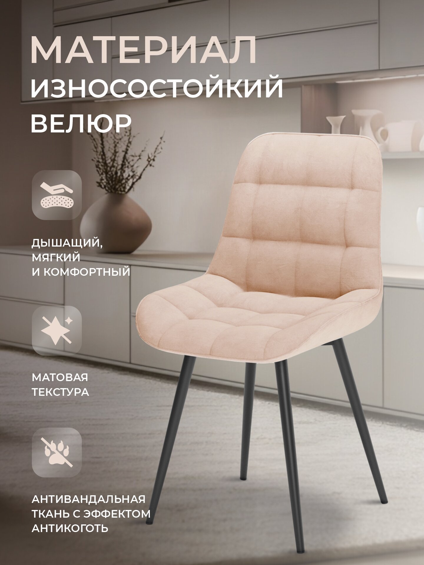 СохранитьСтулья для кухни комплект 2 шт, стул мягкий со спинкой, велюр, румба, бежевый интересное: