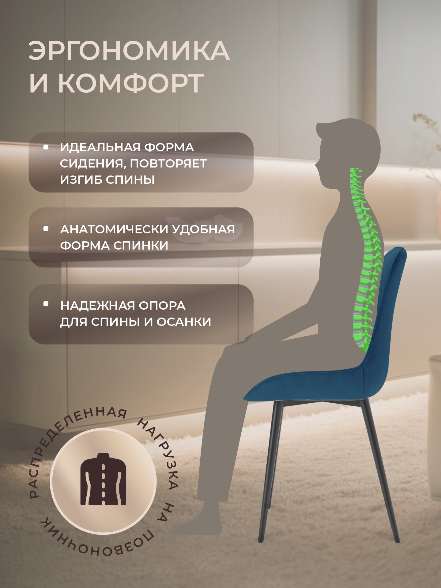 Стул для кухни обеденный комплект 2 шт с мягкой спинкой. Стулья кухонные велюр для гостиной и стола