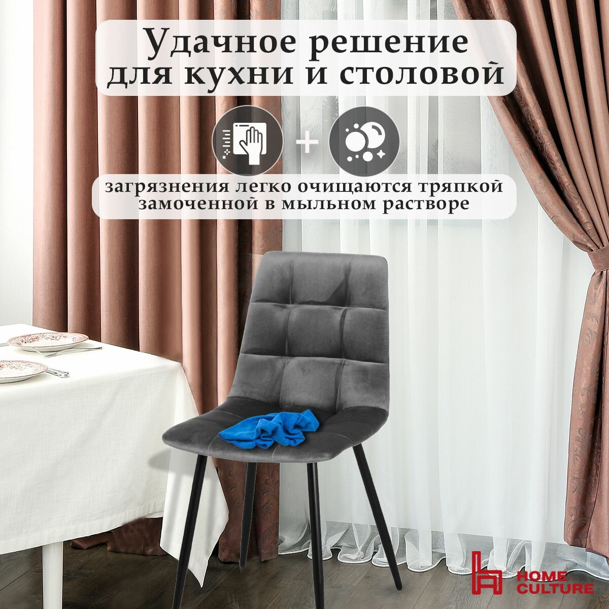 Стул ZASIDELIS УНИ мягкий для кухни дома и офиса темно-серый/коричневый, велюр, 56х65х84 см, до 130 кг