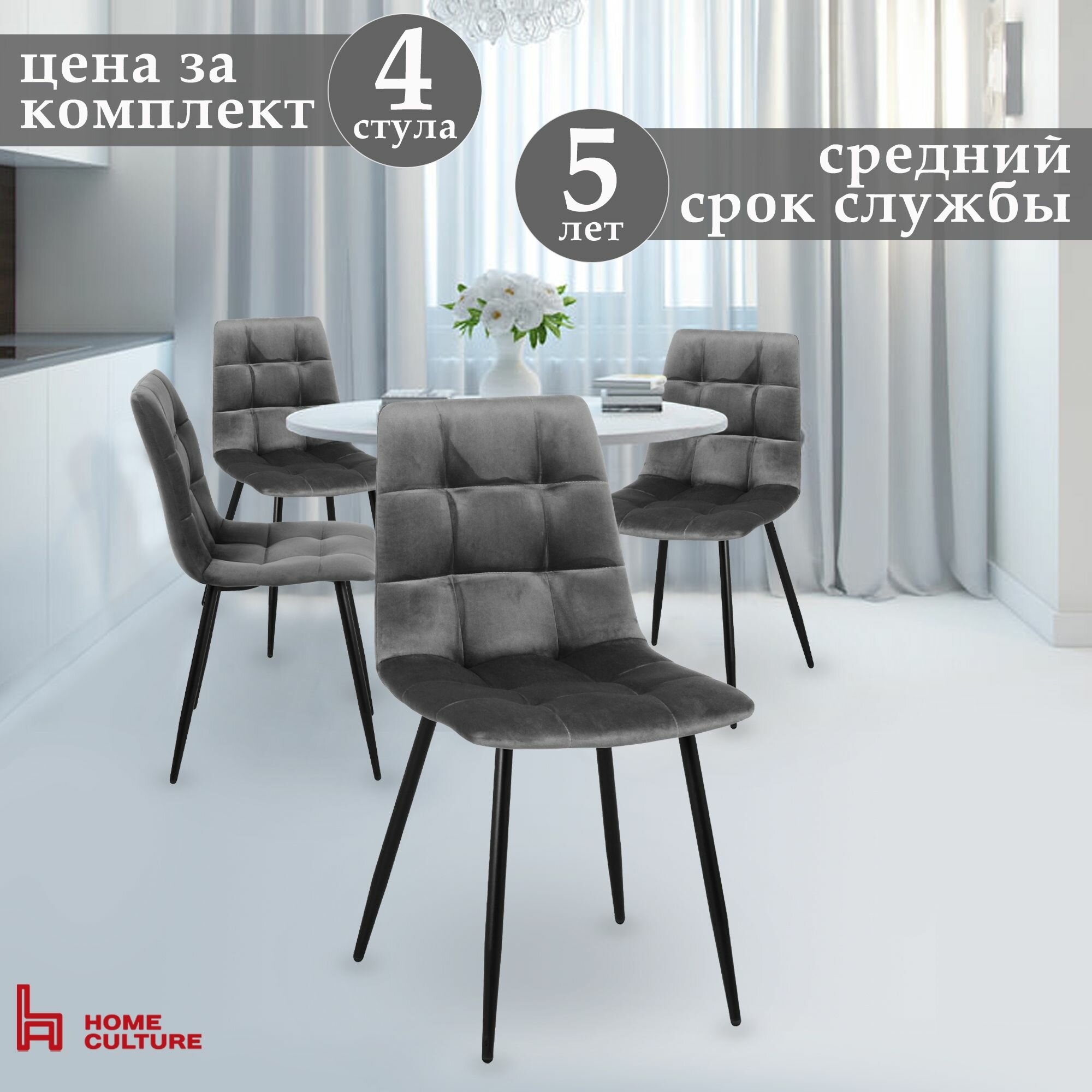 Купить Стулья для кухни мягкие Чили 4 шт со спинкой интерьерные, серый каркас черный