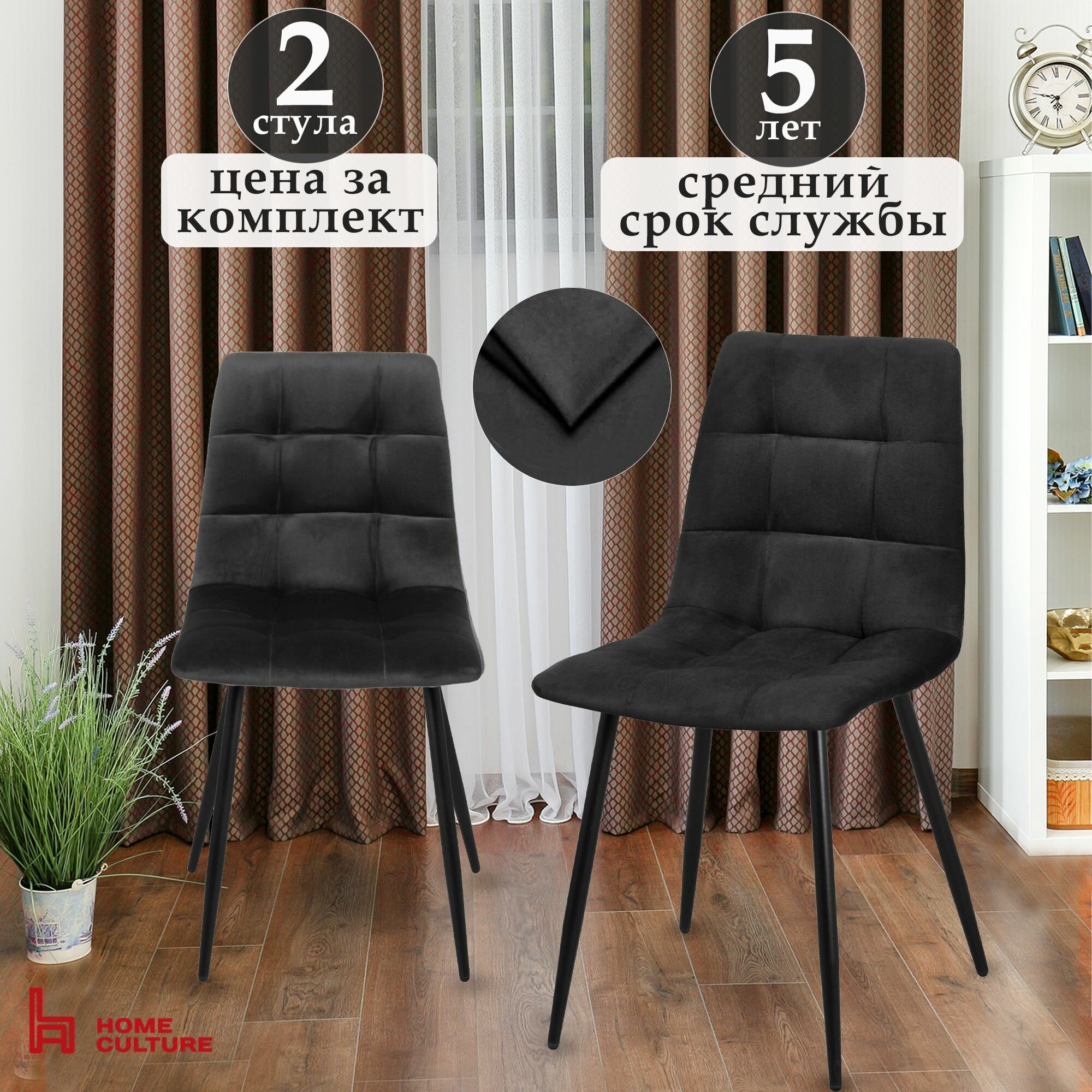 Купить Стулья для кухни мягкие Чили 2 шт со спинкой интерьерные, черный, каркас черный
