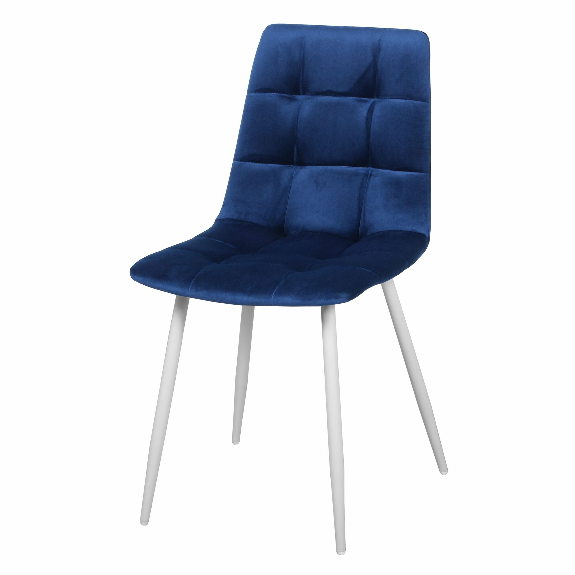 Стул для кухни мягкий Чили 1 шт со спинкой интерьерный, синий, каркас белый
