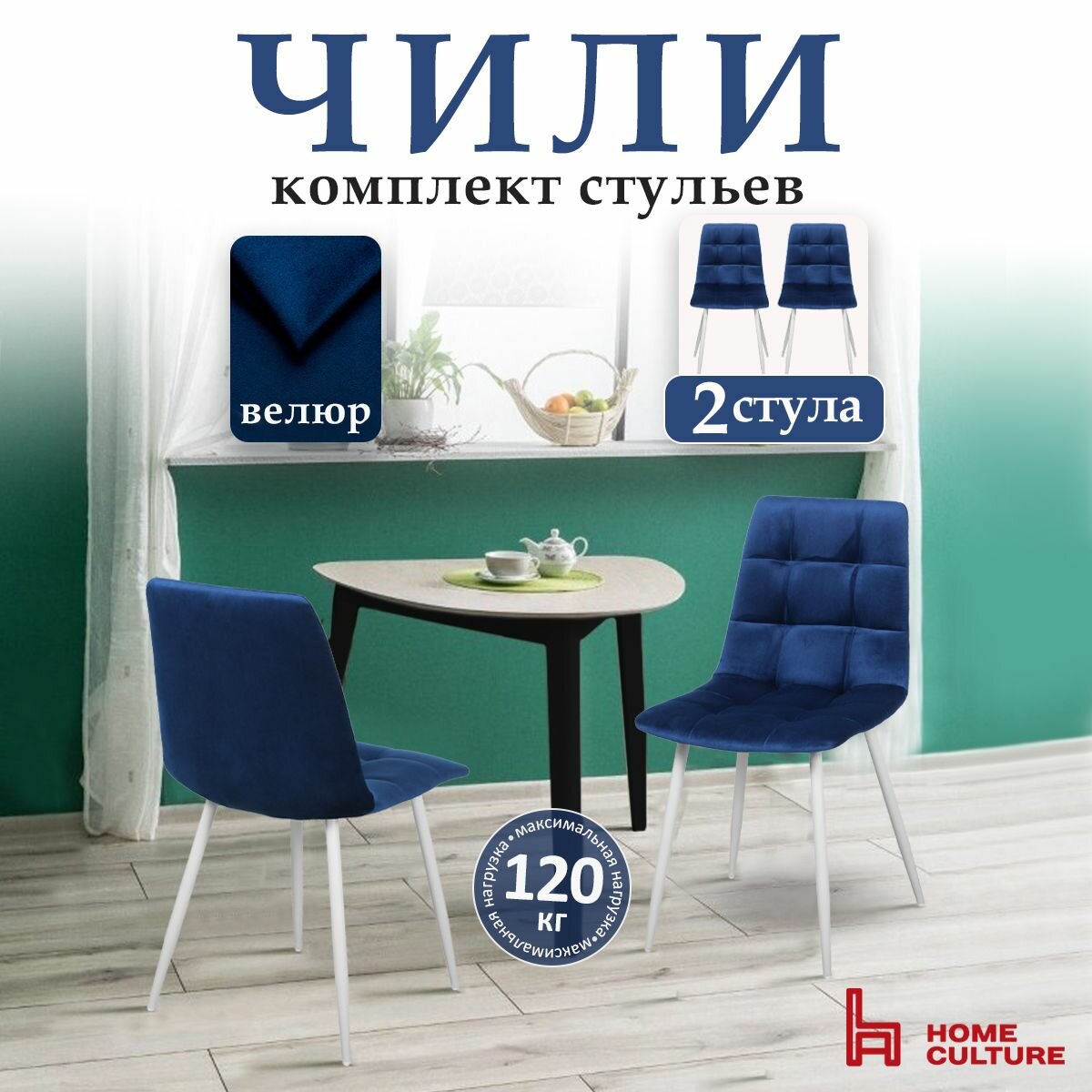 Купить Стулья для кухни мягкие Чили 2 шт со спинкой интерьерные, синий, каркас белый