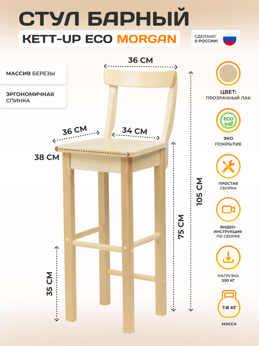 СохранитьСтул барный KETT-UP ECO MORGAN (морган) деревянный прозрачный лак интересное: