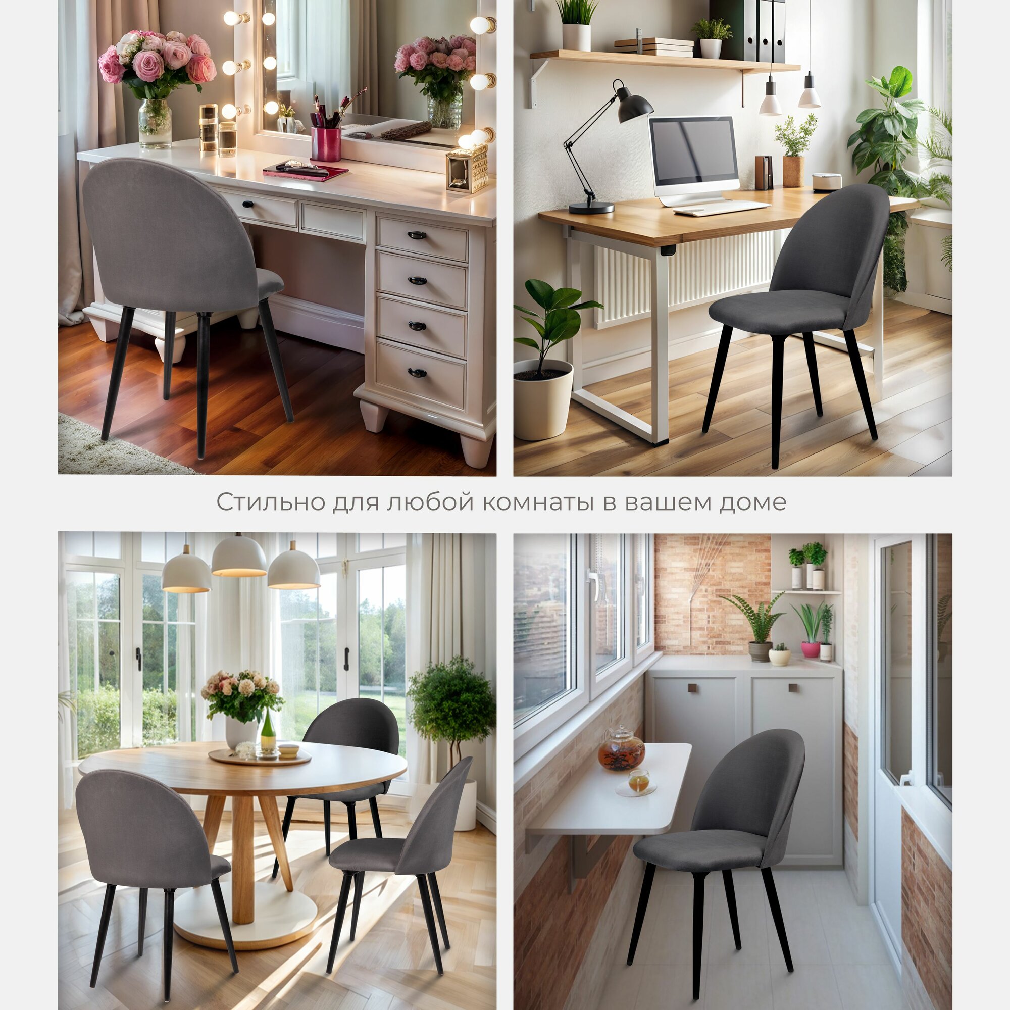 Стулья для кухни комплект 4 штуки мягкие, кухонные стулья со спинкой для дома гостиной, серый бархат, АМИ мебель
