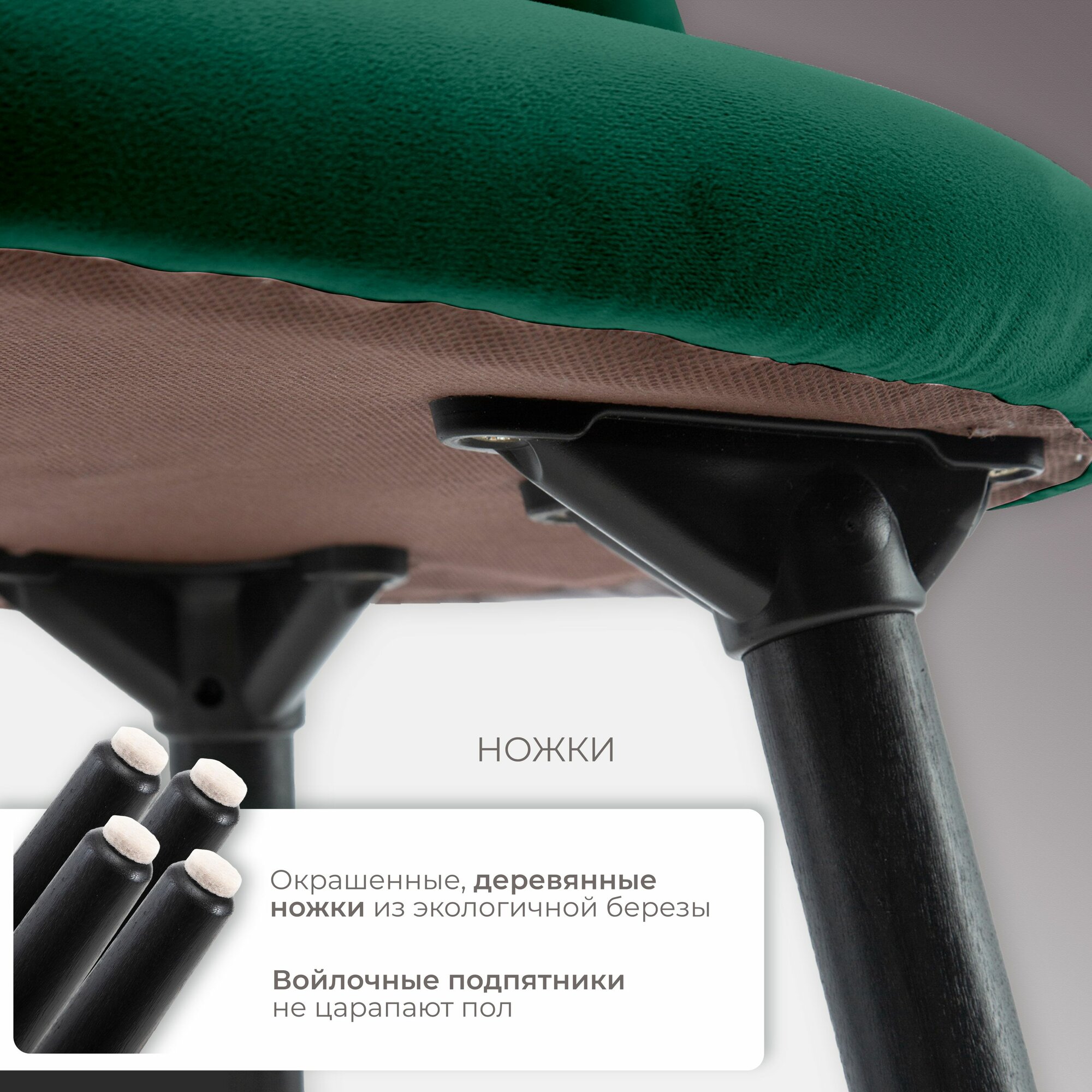 Мягкий стул кухонный со спинкой Лори, ножки деревянные, обеденный для кухни гостиной и дома, вельвет зеленый, АМИ Мебель