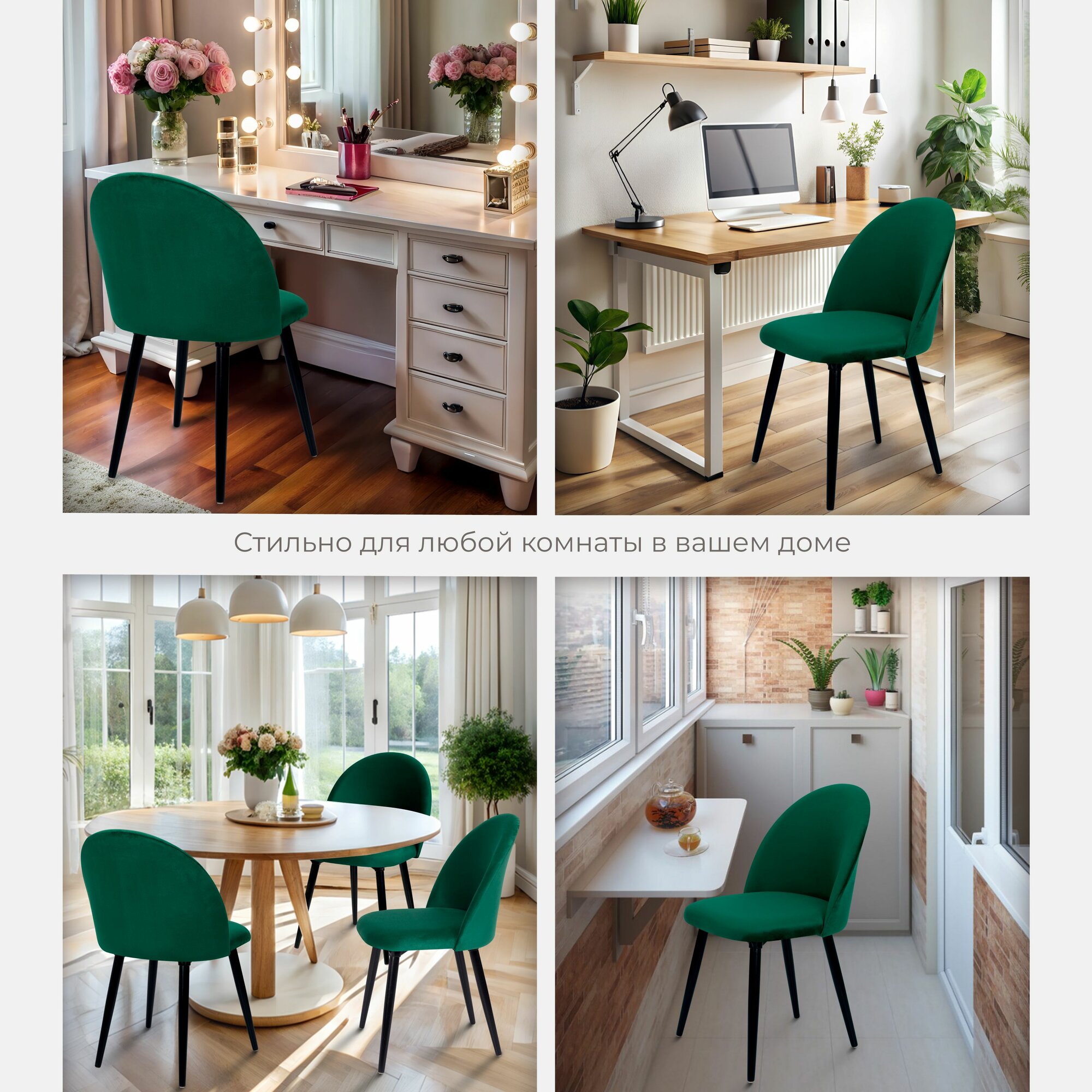 СохранитьСтулья для кухни комплект 4 штуки мягкие, кухонные стулья со спинкой для дома гостиной, зеелный вельвет, АМИ мебель интересное: