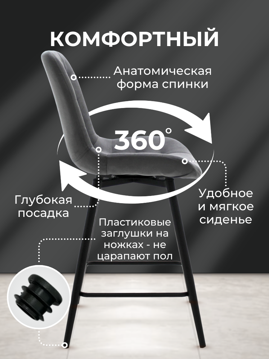 Барный стул с мягким сиденьем и спинкой, поворотный механизм интересное: