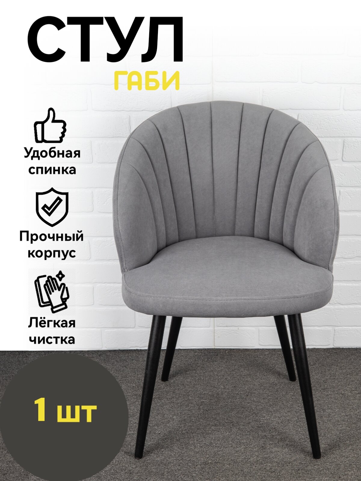СохранитьСтул кухонный, мягкий со спинкой, Габи, Azzurro mebel, металлокаркас, cерый, черные ножки интересное: