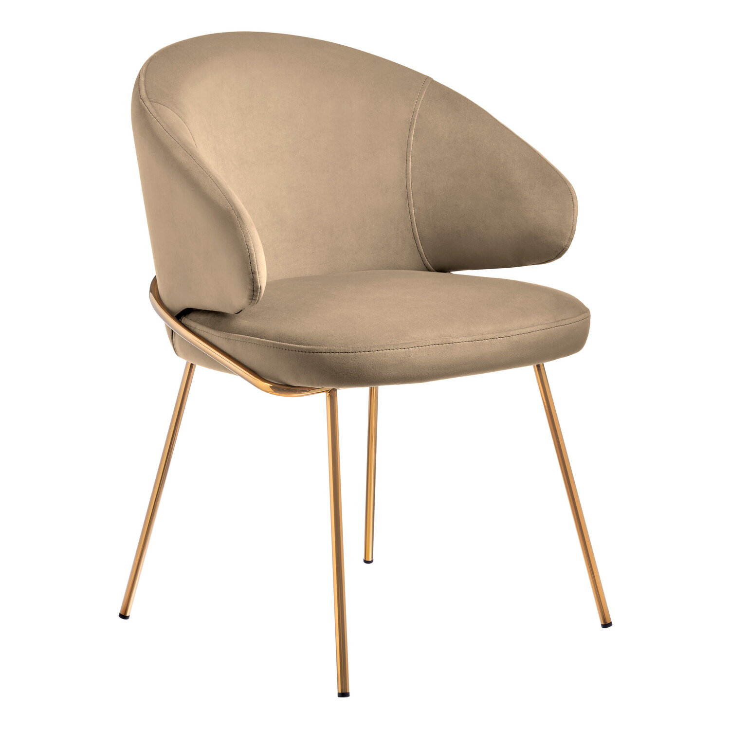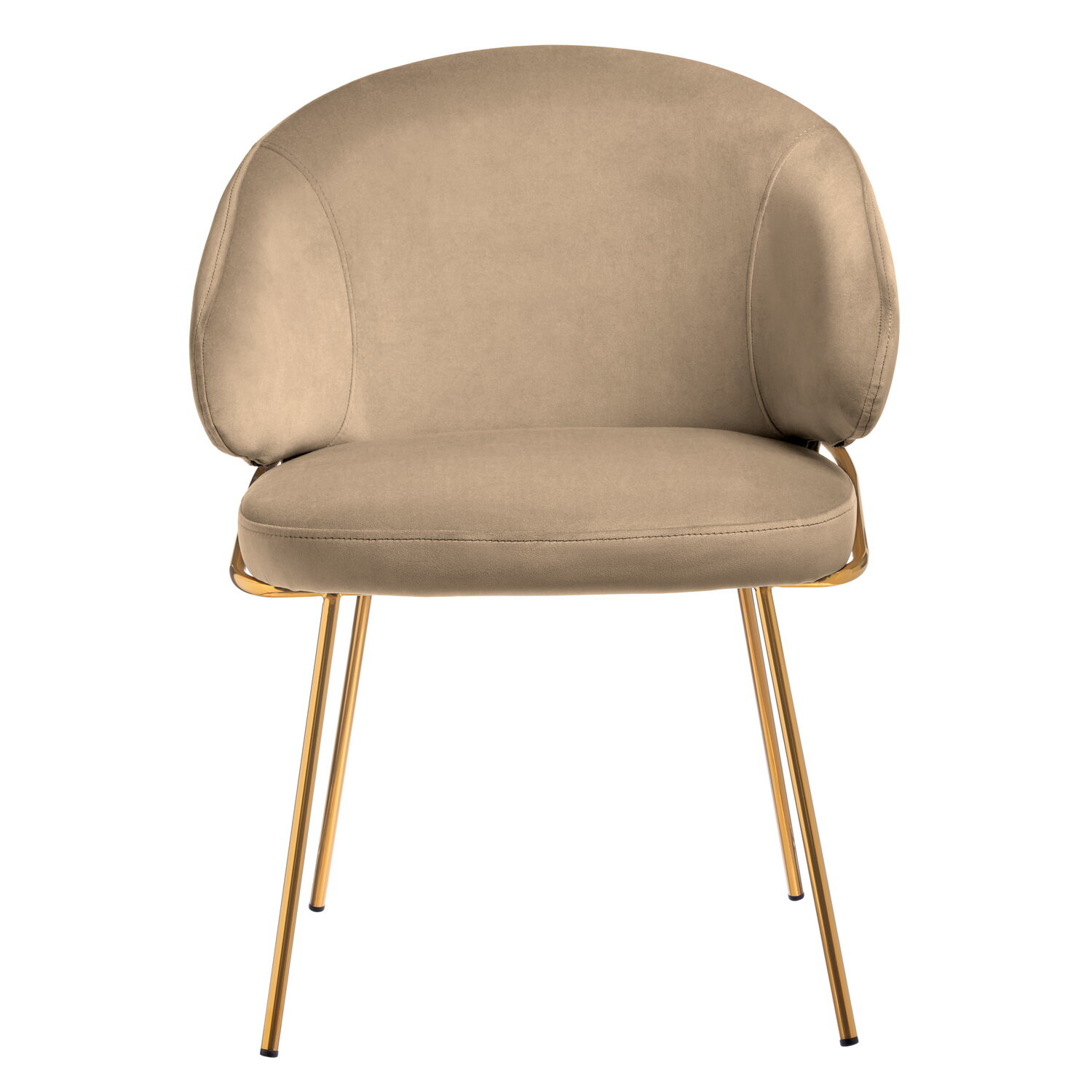 Купить Стул кухонный со спинкой и с подлокотниками Emil бежевый латте с золотыми ножками обеденный мягкий для гостиной велюр