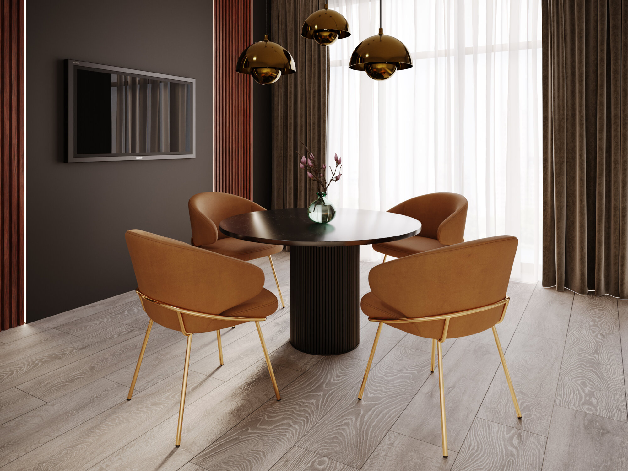 Стул дизайнерский кухонный со спинкой и с подлокотниками Emil горчичный с золотыми ножками обеденный мягкий для гостиной велюр
