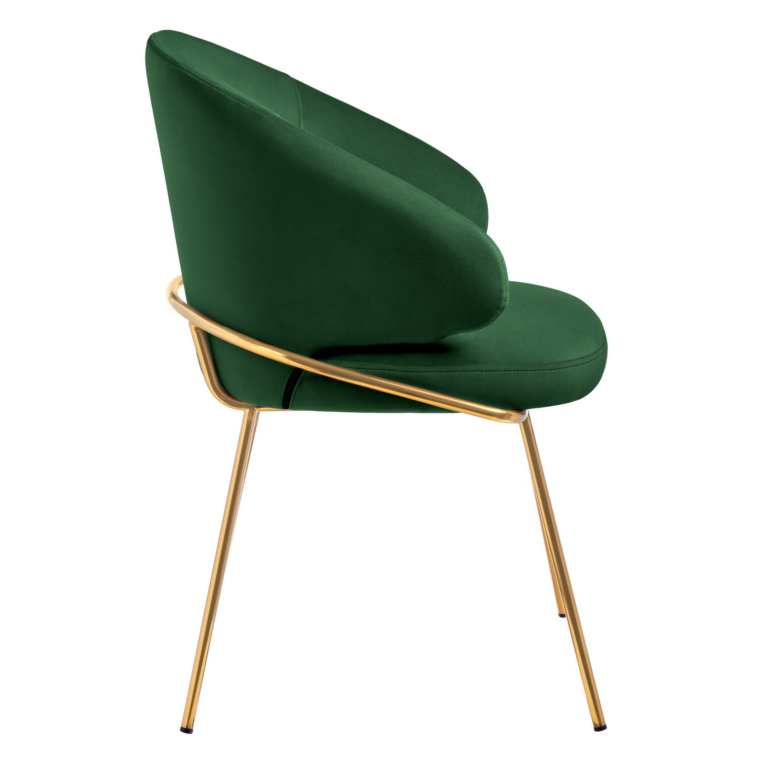 Купить Стул кухонный со спинкой и с подлокотниками Emil зеленый с золотыми ножками обеденный мягкий для гостиной велюр