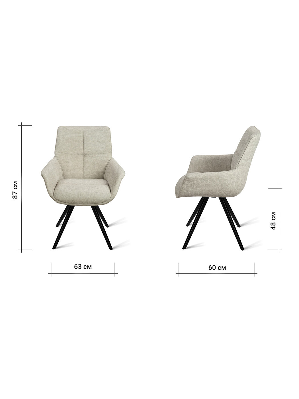 Стул-кресло B826-m GARDA LATTE BK (2 шт.) с поворотным механизмом, шенилл темно-бежевый, черные ножки