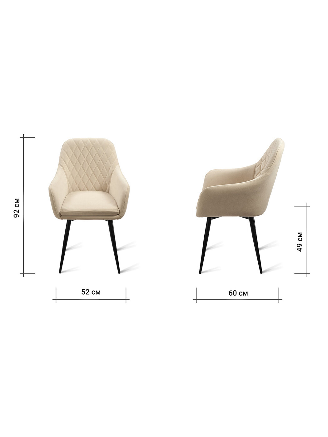 Стул-кресло B345-m LATTE BK (2 шт.) с поворотным механизмом, велюр латте, черные ножки