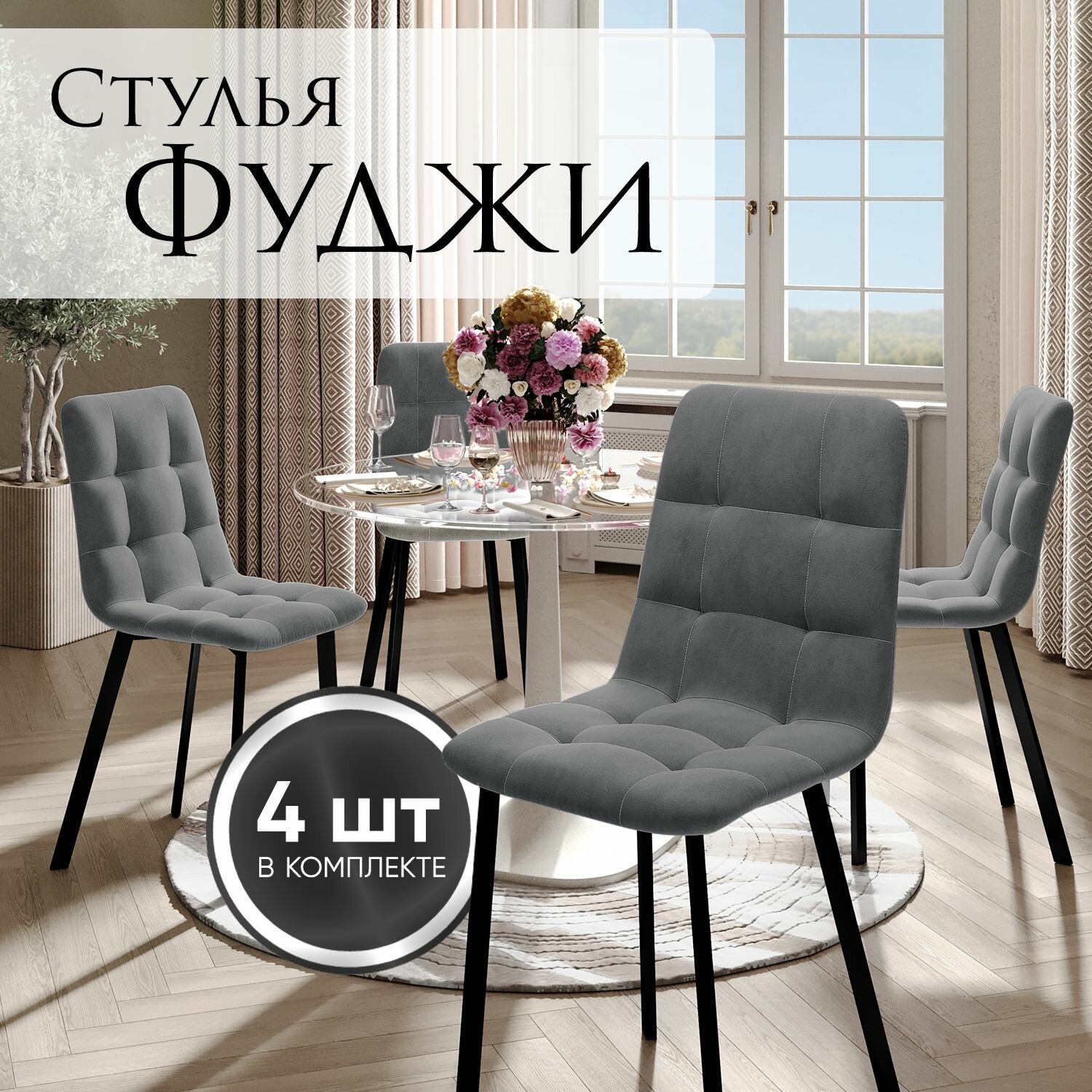 Стулья для кухни Фуджи, комплект 4 шт, цвет графит, белые ножки