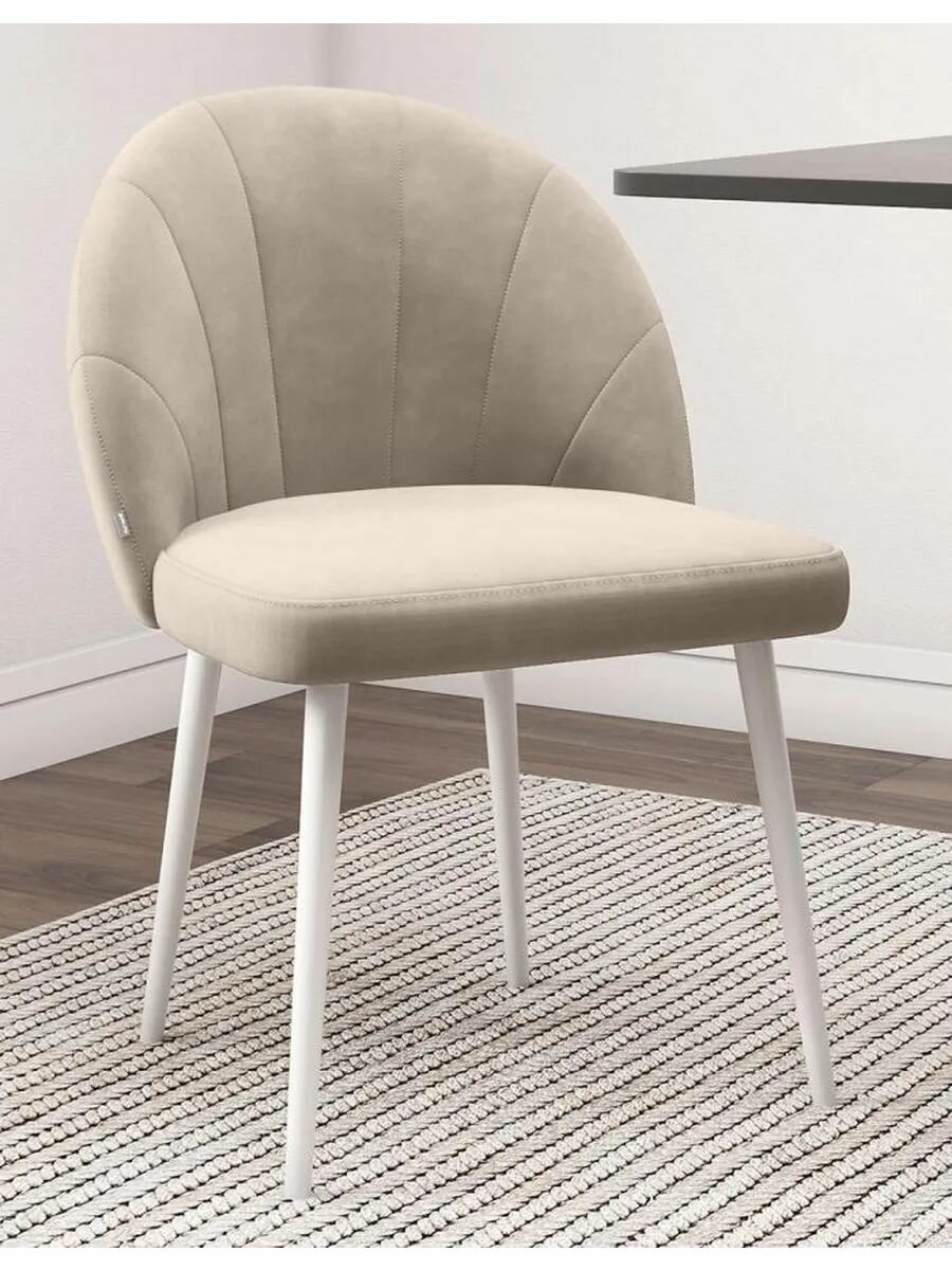 Купить Стул для кухни Джеффри с мягким сиденьем, без подлокотников, 53х57х78 см, Бежевый, велюр / Белый, металл