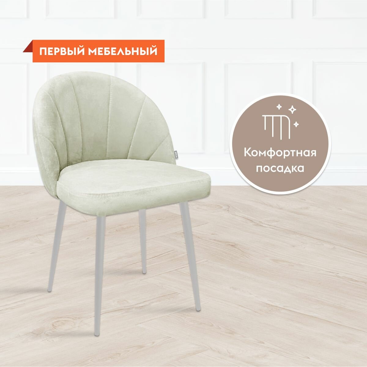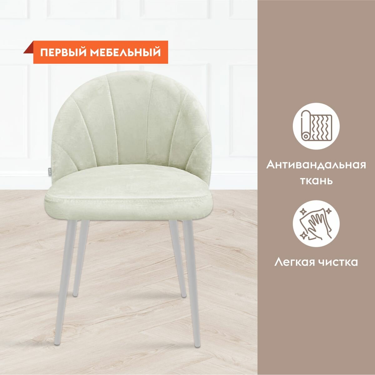Стул для кухни Джеффри с мягким сиденьем, без подлокотников, 53х57х78 см, Бежевый, велюр / Белый, металл
