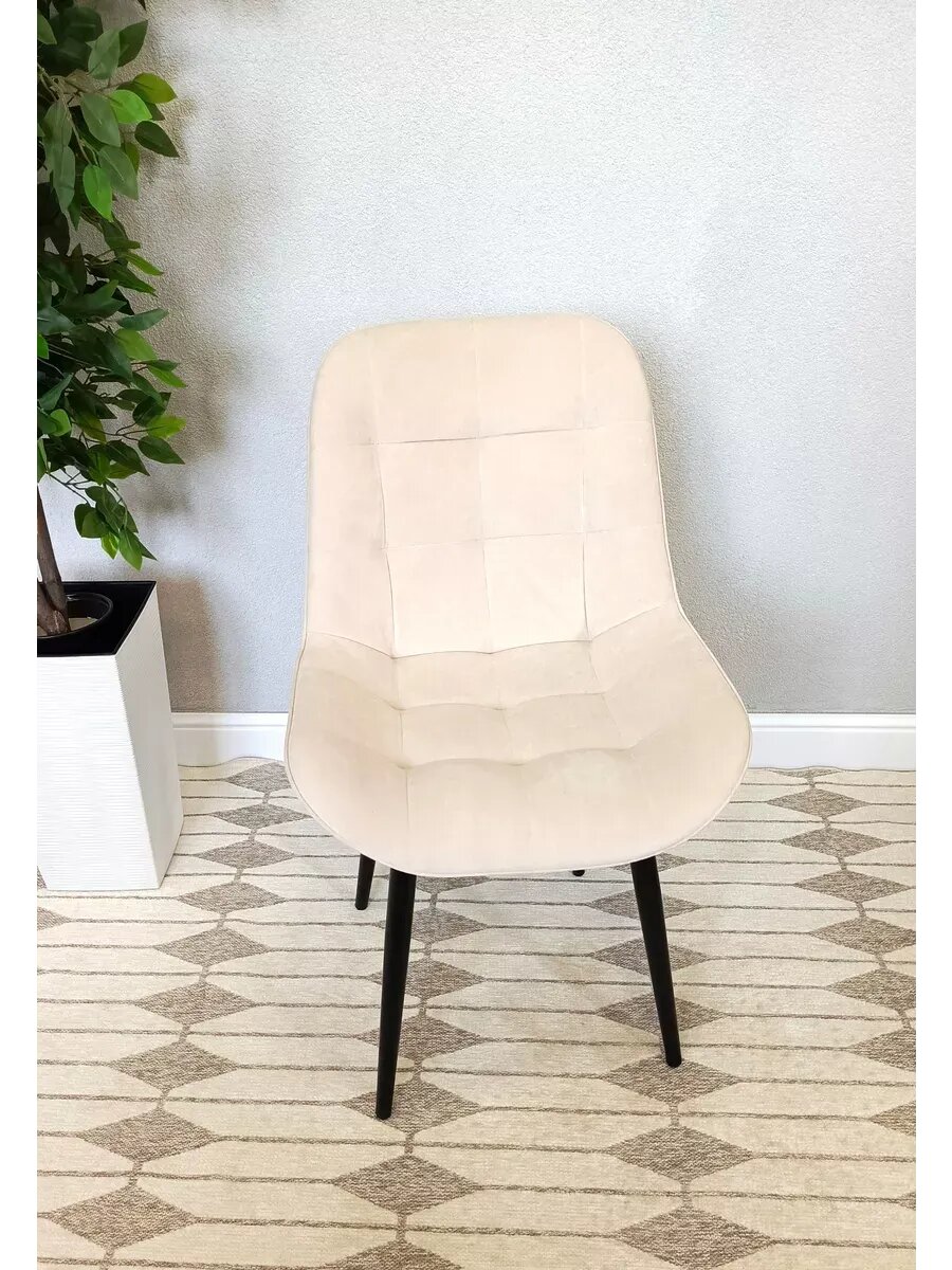 Купить Стул EXPERTMEBEL "Румба", велюр, мягкий, для кухни и офиса, молочный с черными ножками