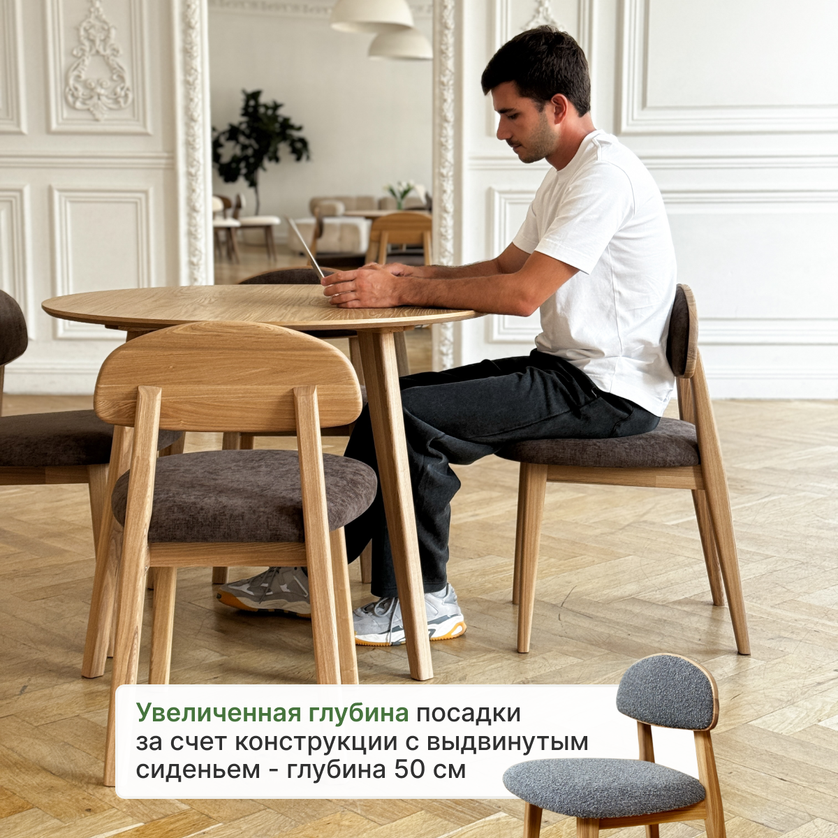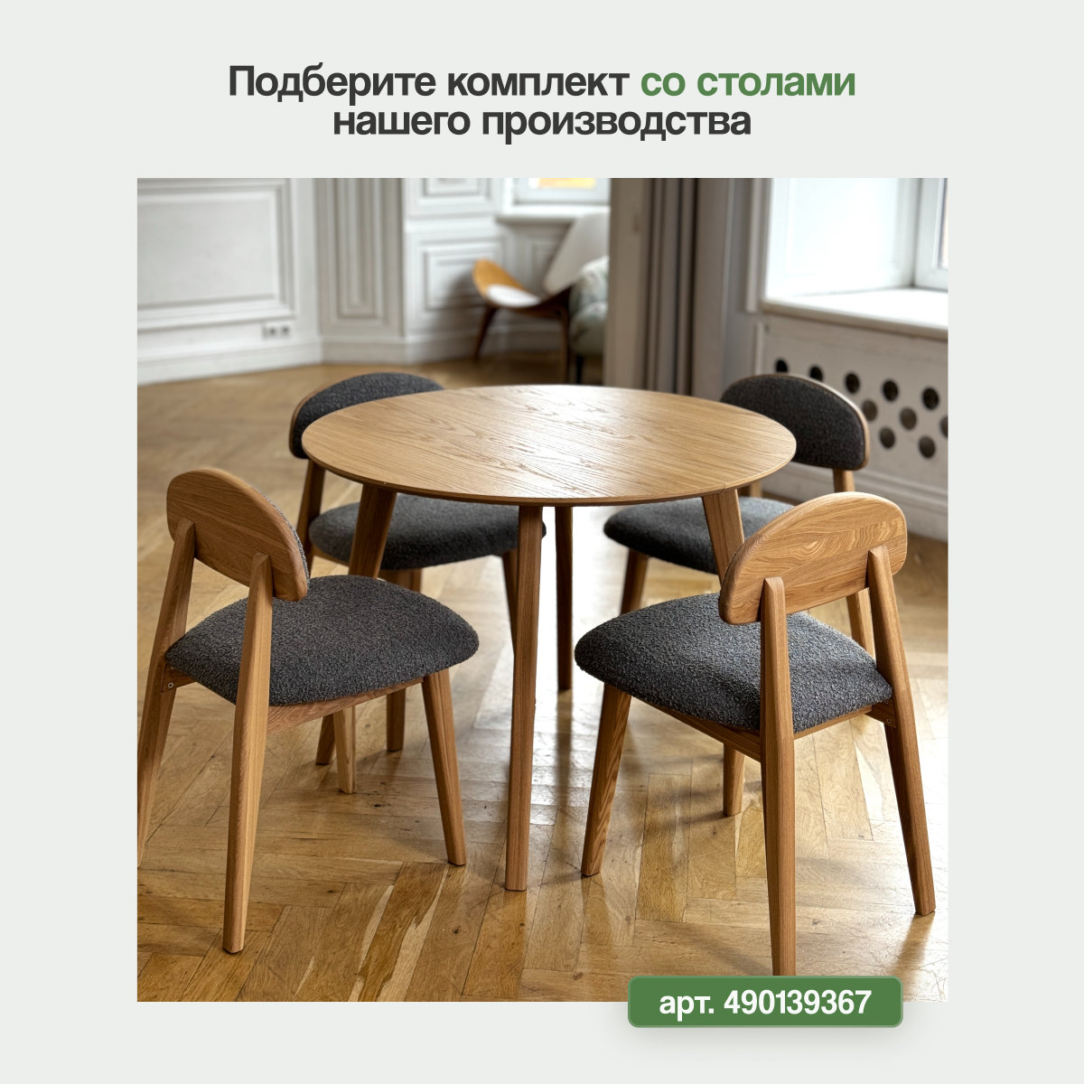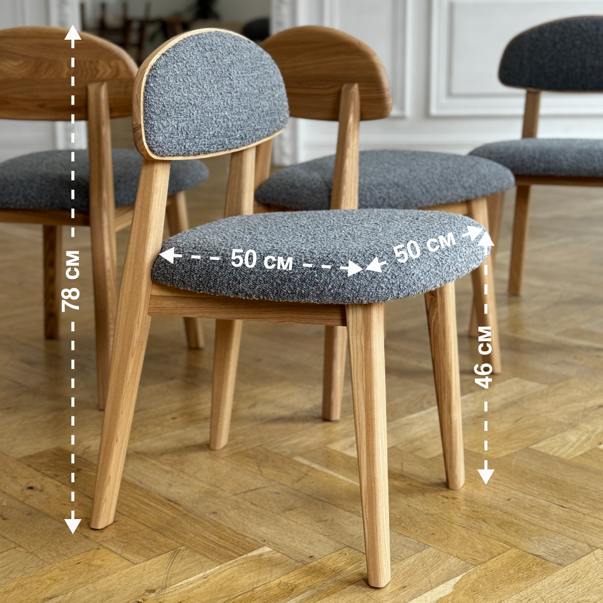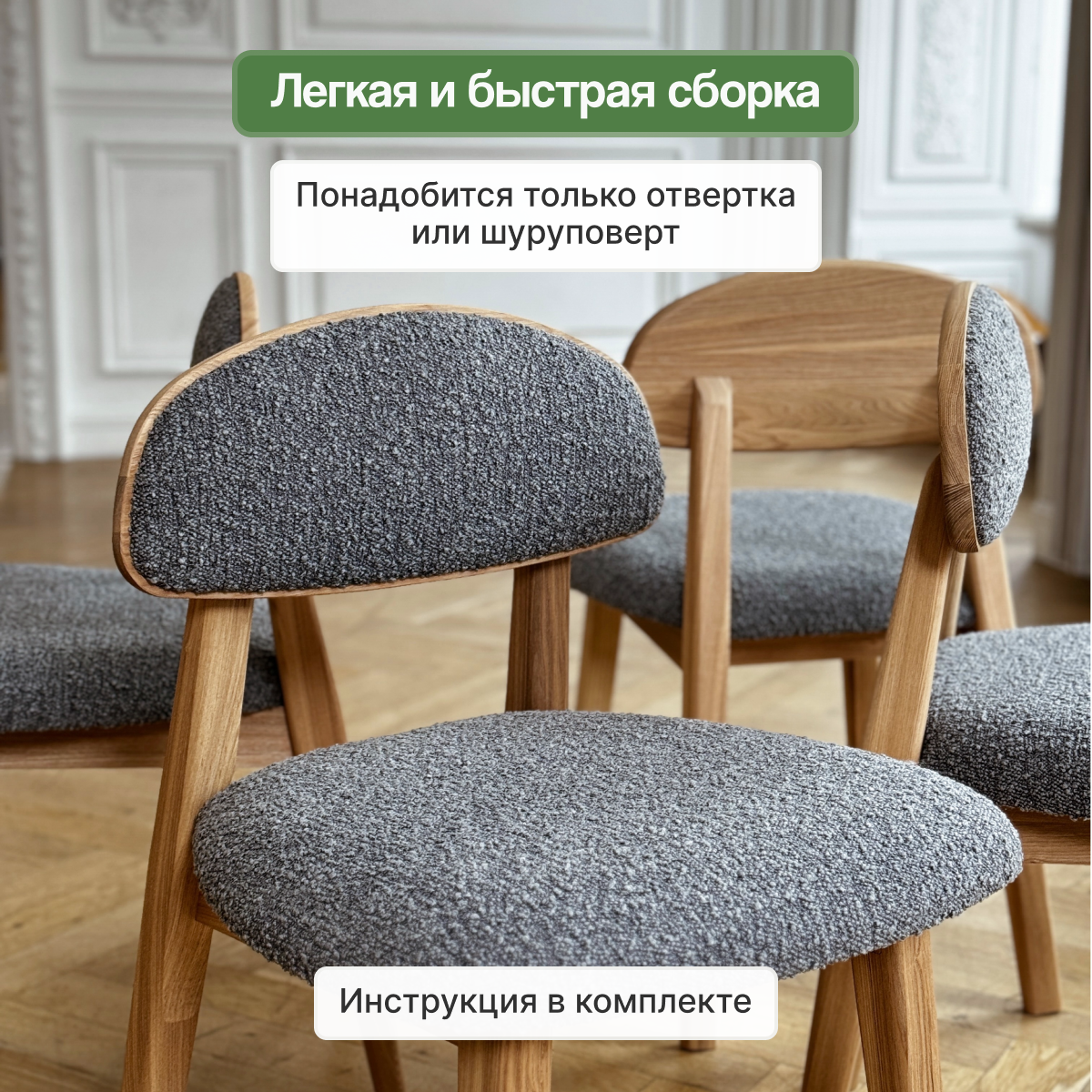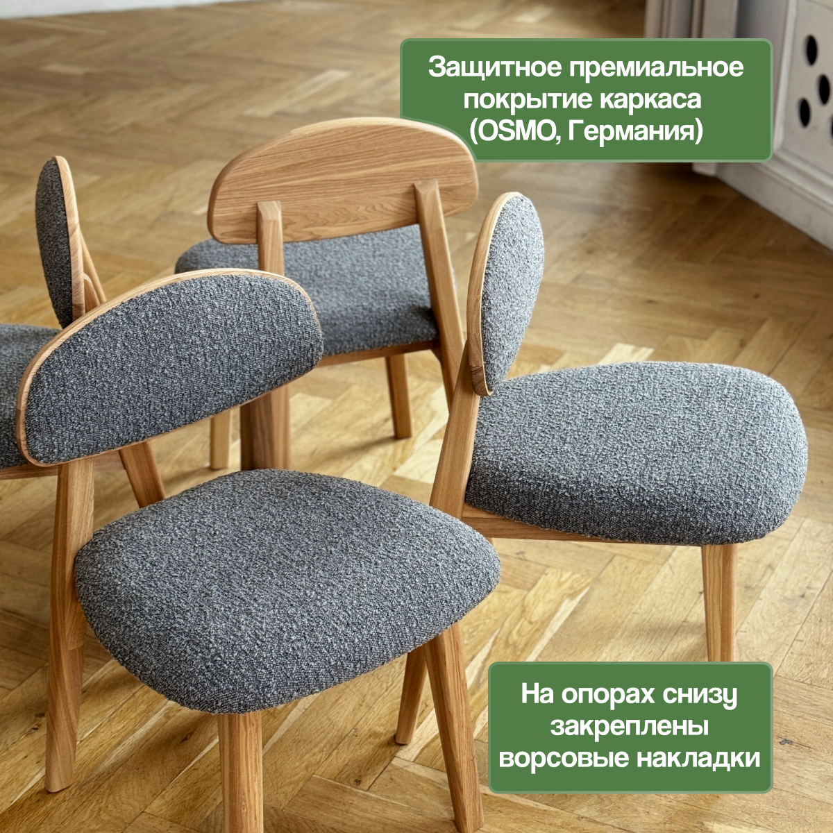 Стул кухонный Loft-Form Base из массива дуба, серый букле натур, 1 штука интересное: