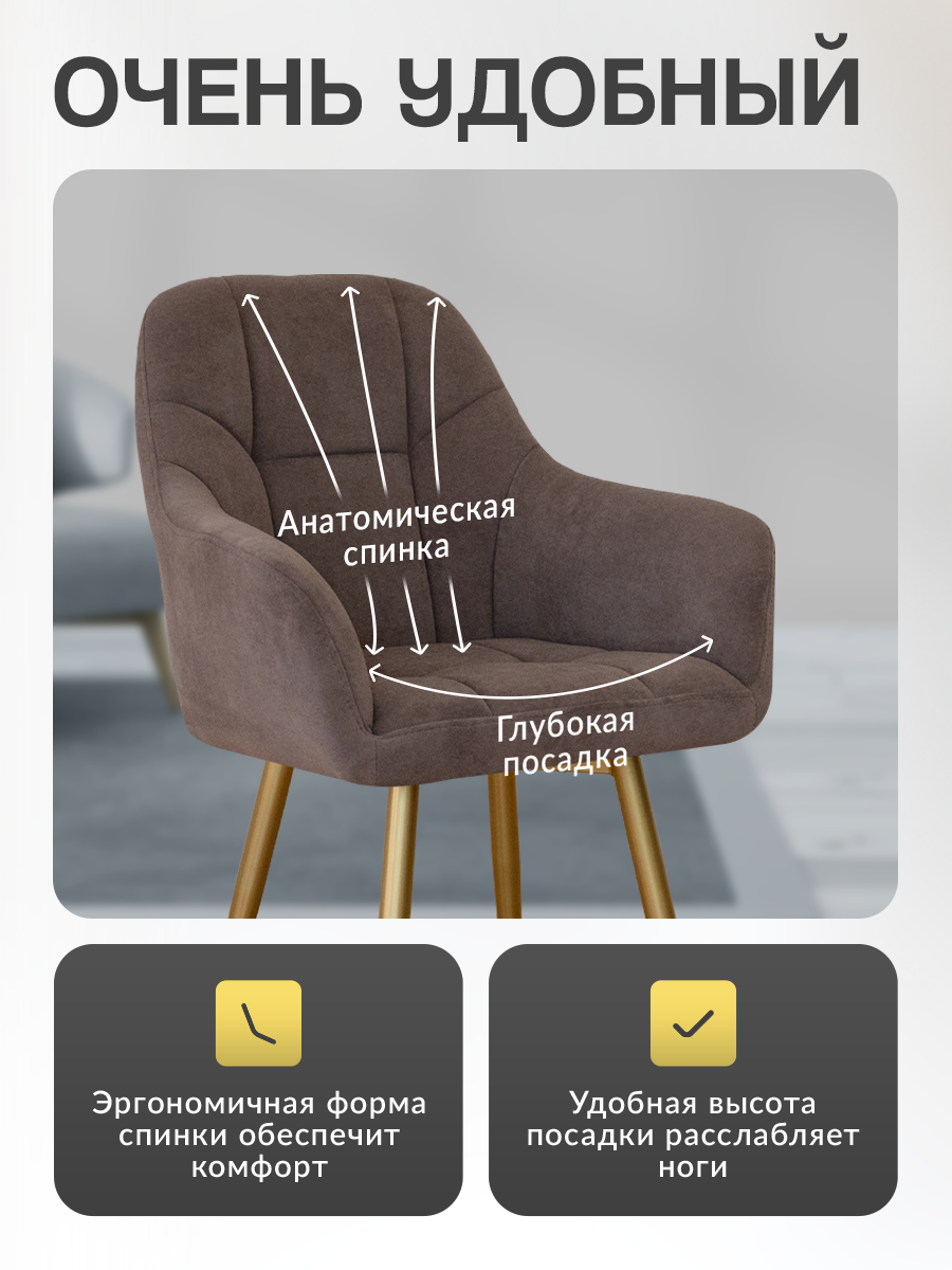 Кресло мягкое Эрлинг Aqva, шенилл мягкое, для кафе и бара, в офис, для кухни, на ножках, скандинавский лофт