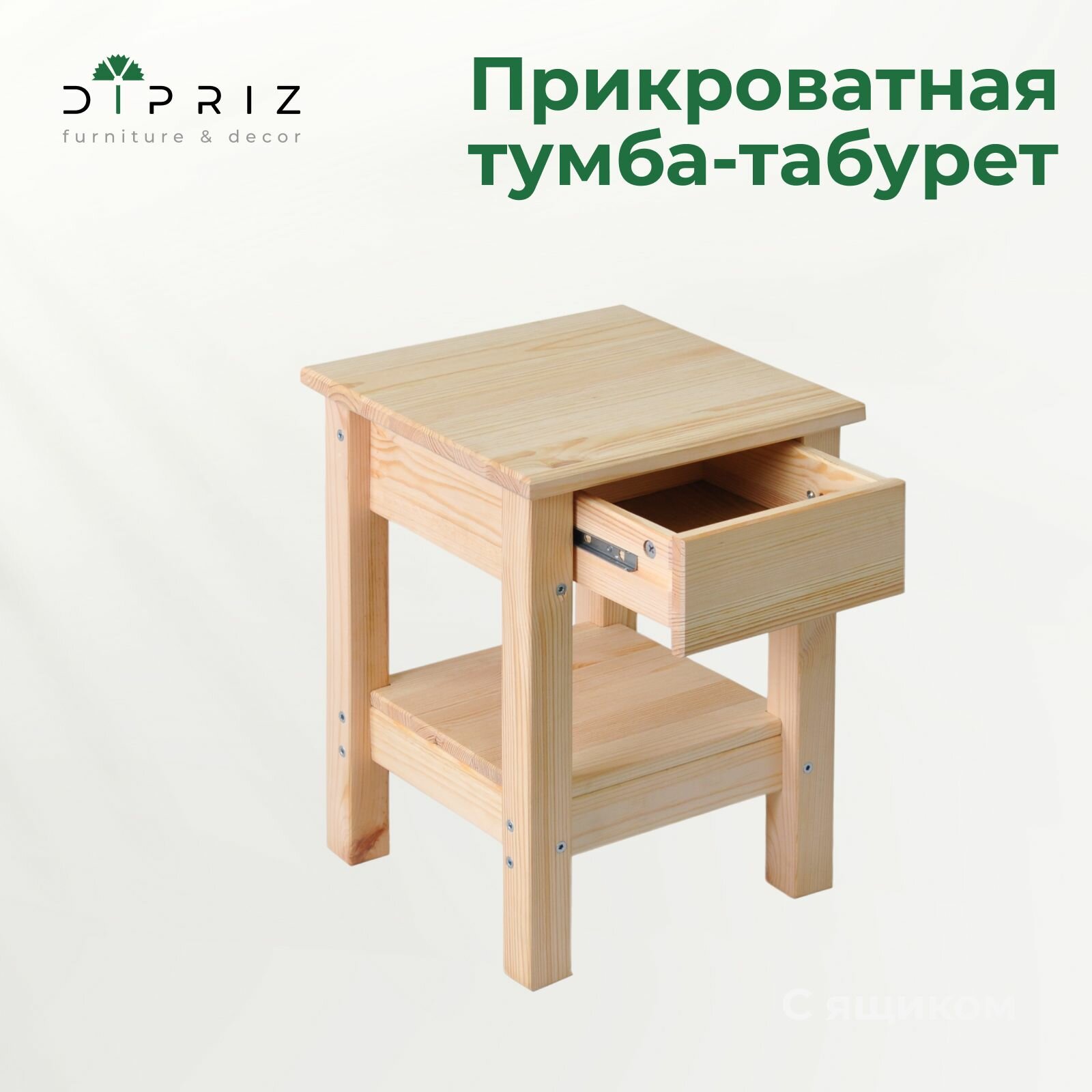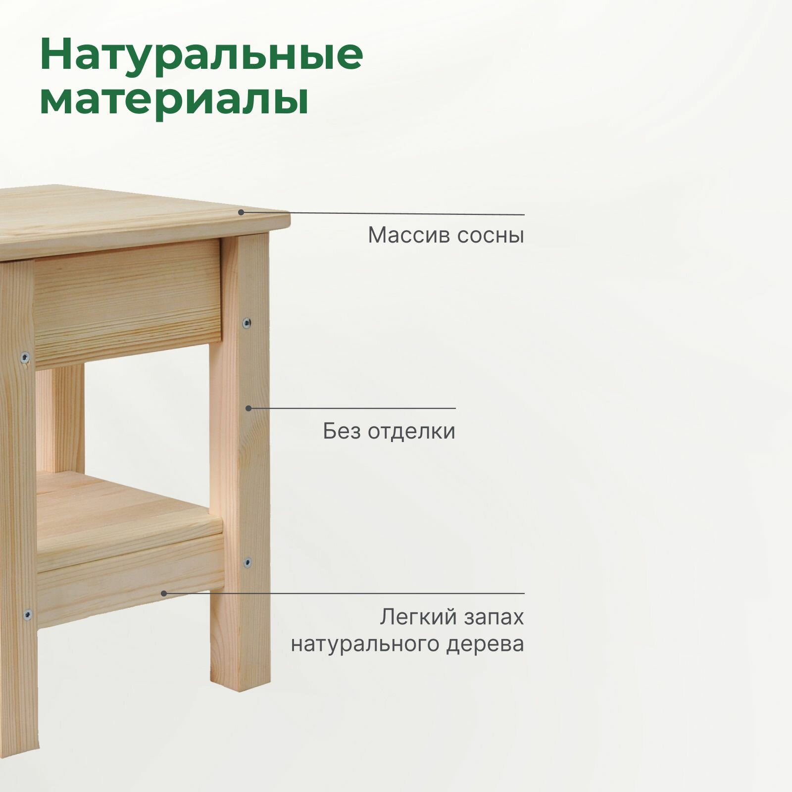 Прикроватная тумба из сосны Ральф с ящиком, 33х33х44 см, табурет деревянный, в натуральной отделке интересное: