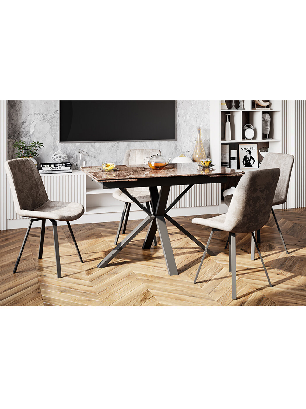 Стул B224-M LATTE VL61 BK (4 шт.) с поворотным механизмом для кухни велюр темно-бежевый, черные ножки, 45х52х87 см