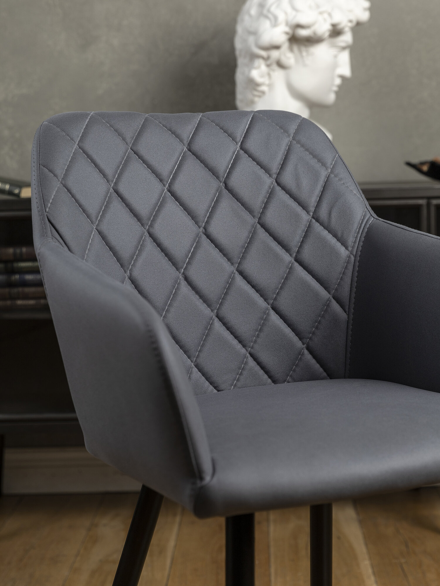 СохранитьСтул кресло лофт Grande, цвет серый под кожу, черные ножки, ромбы интересное: