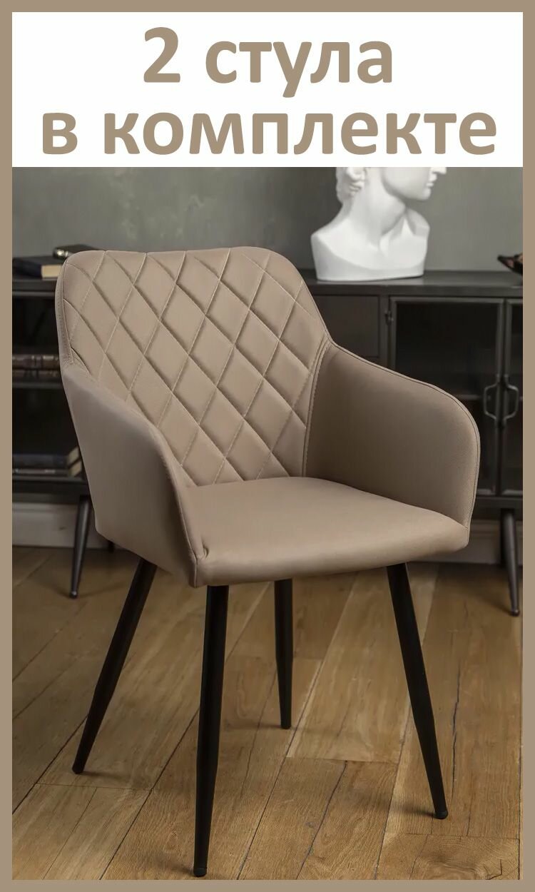 Купить Стулья кухонные со спинкой Grande комплект 2 шт, цвет бежевый велюр под кожу, черные ножки, узор ромбы
