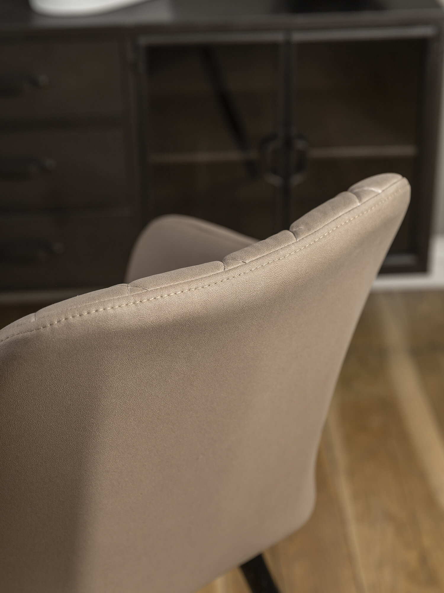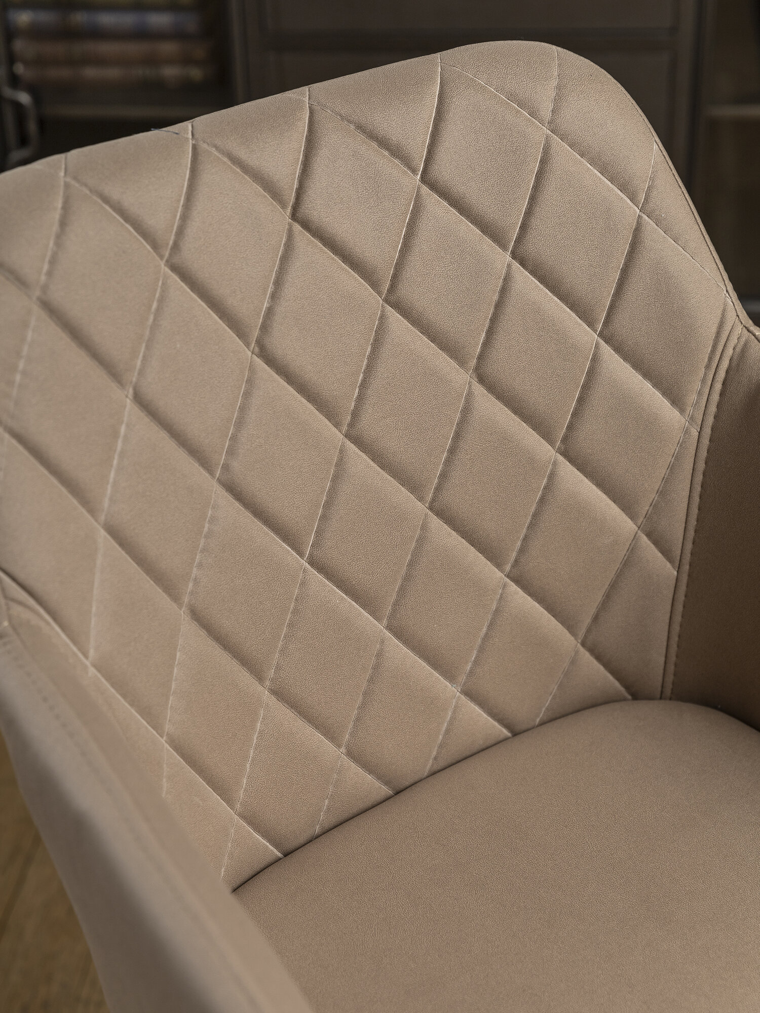 Кухонный стул кресло лофт Grande, цвет бежевый, велюр под кожу, черные ножки, узор ромбы