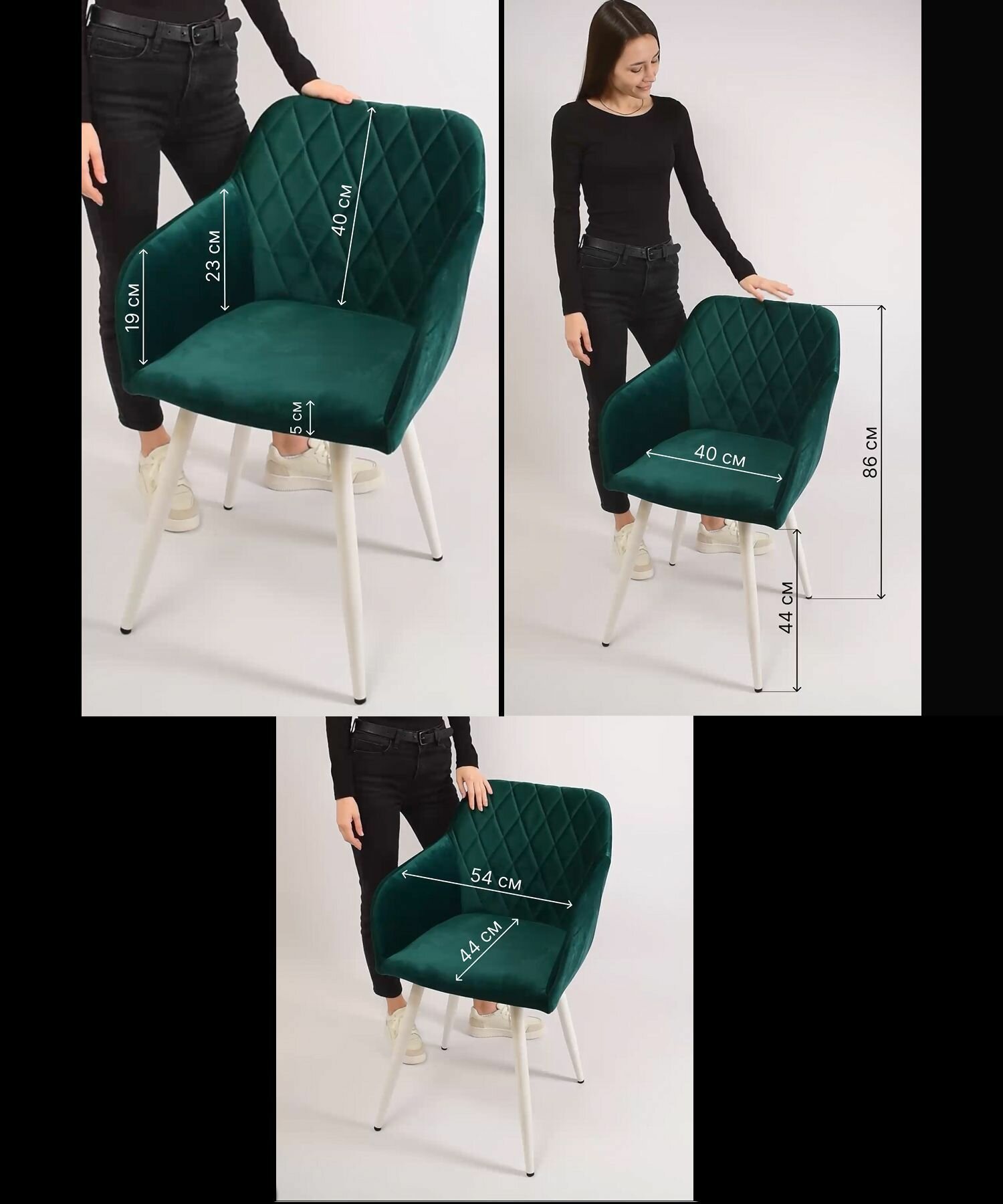 Стулья кухонные со спинкой Grande комплект 2 шт, цвет изумруд, черные ножки, узор ромбы