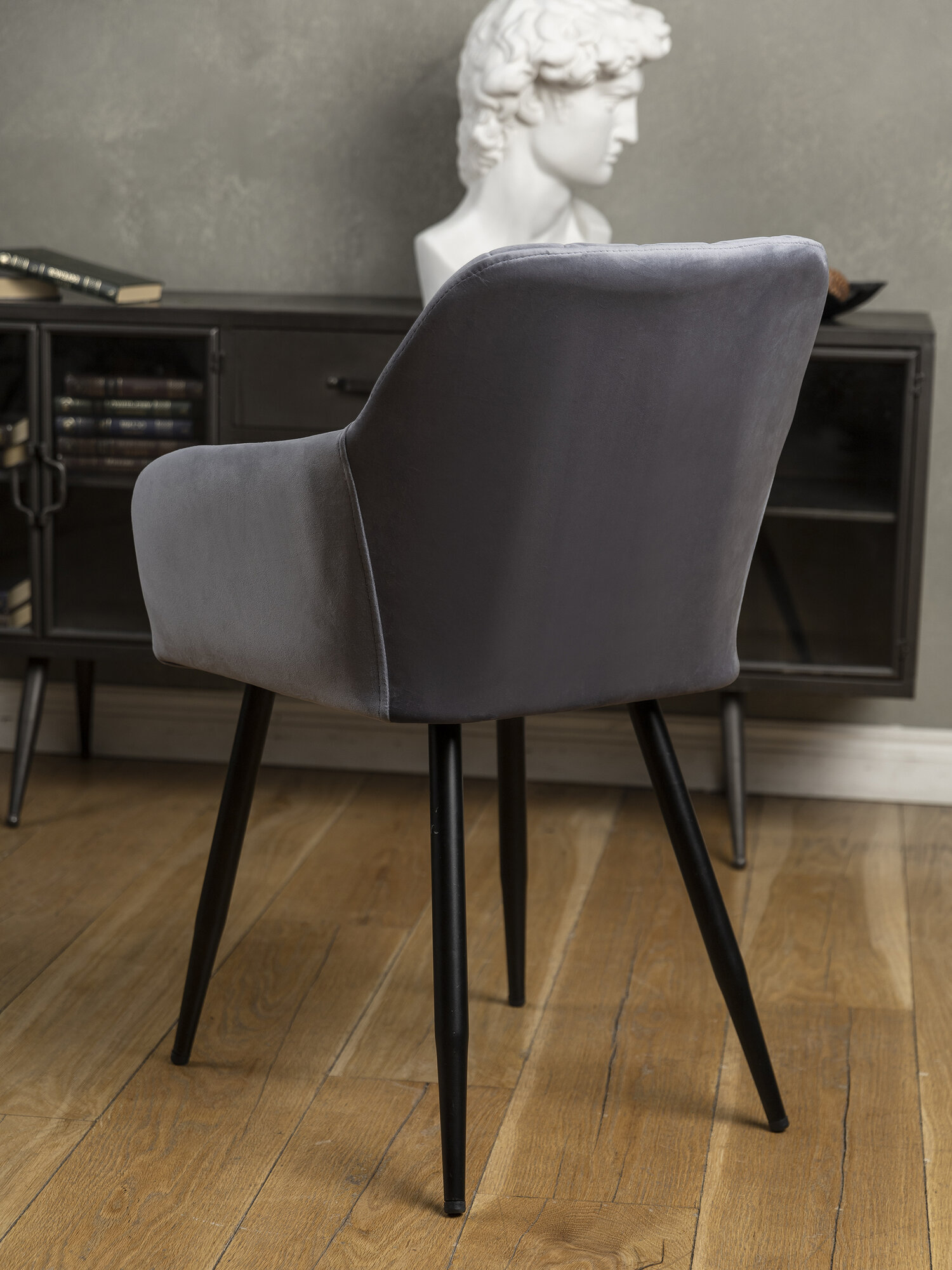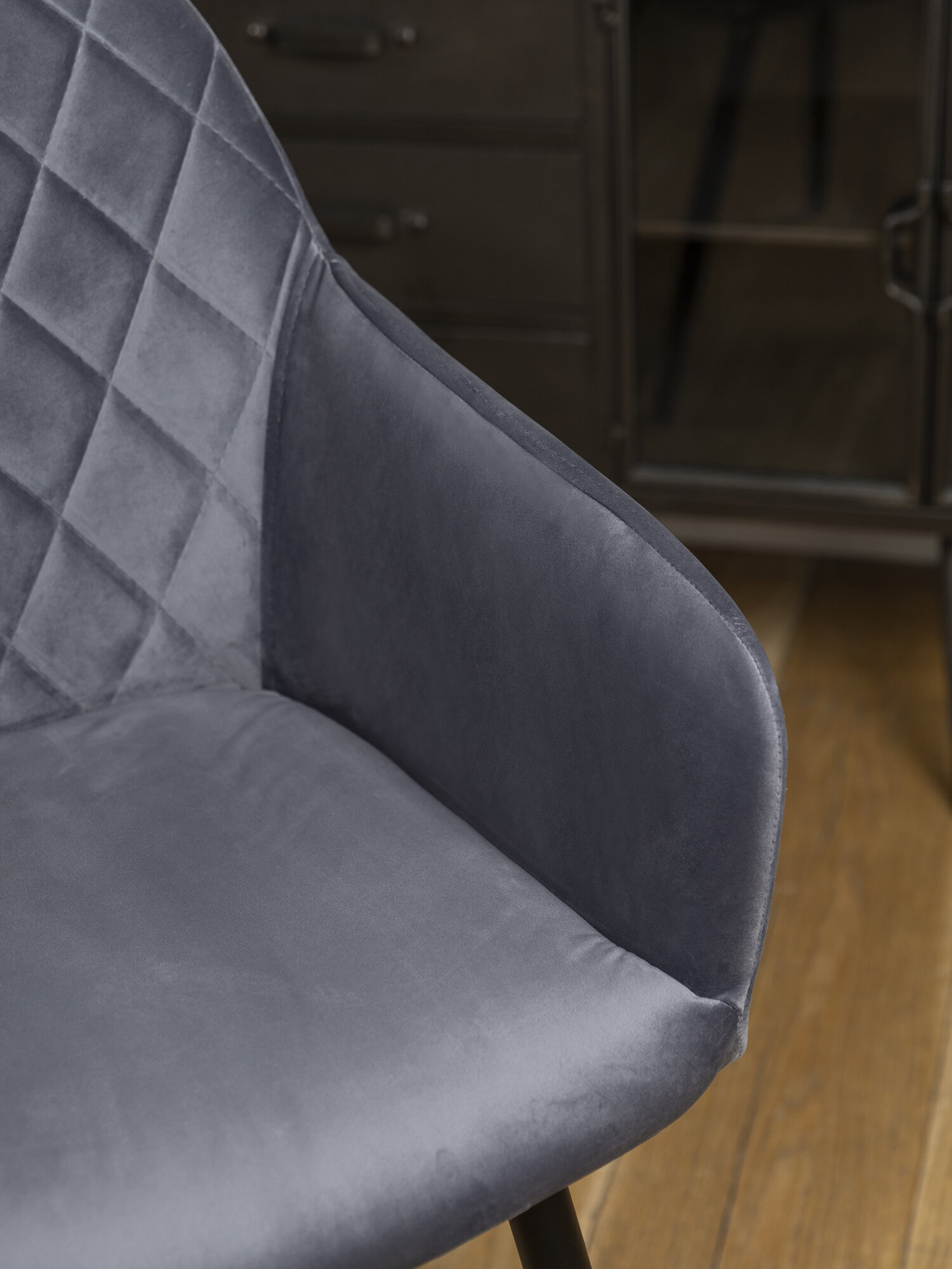 Стулья кухонные со спинкой Grande комплект 2 шт, цвет серый велюр под кожу, черные ножки, узор ромбы