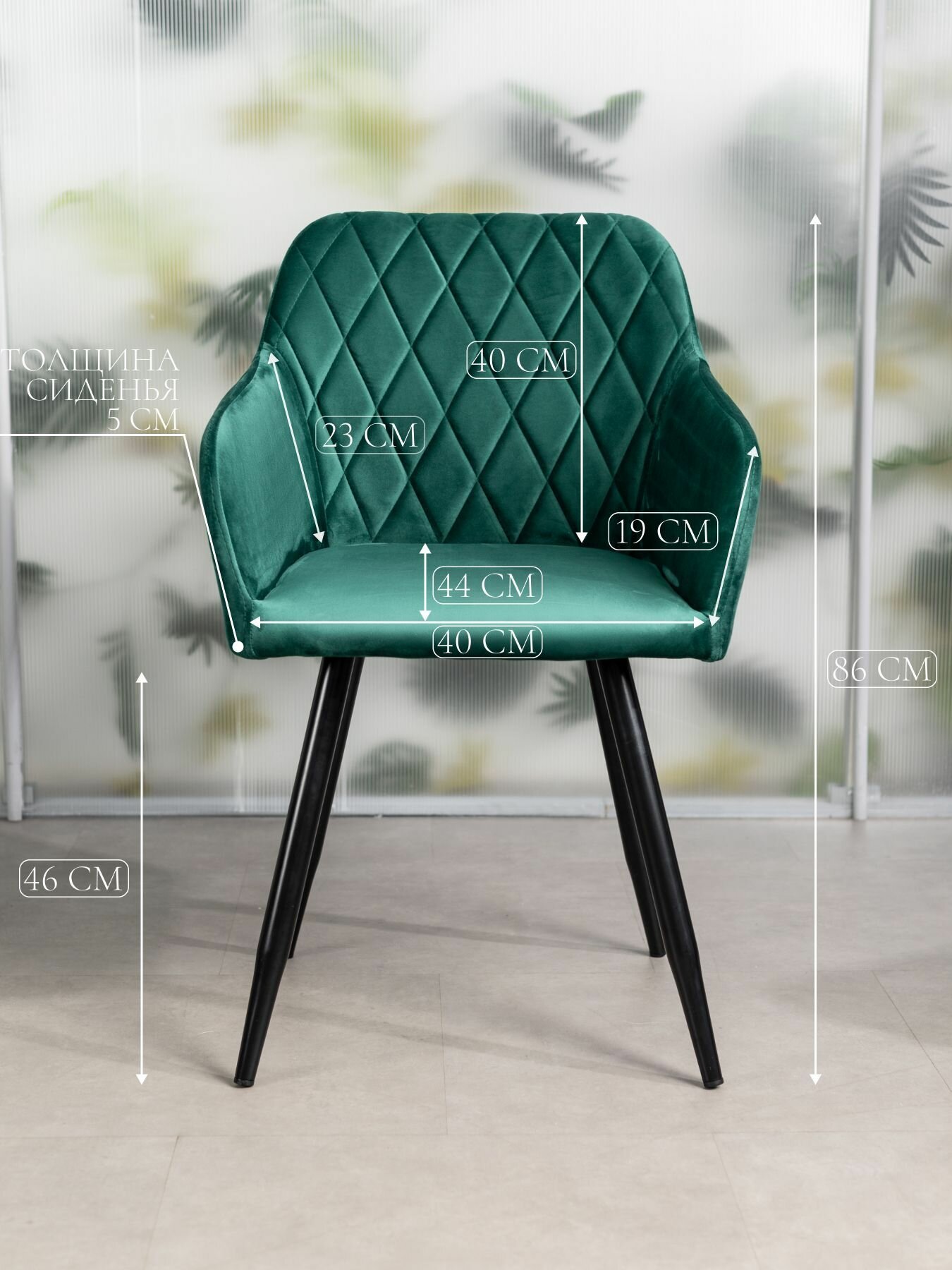 Купить Стулья кухонные со спинкой Grande комплект 2 шт, цвет изумруд, черные ножки, узор ромбы