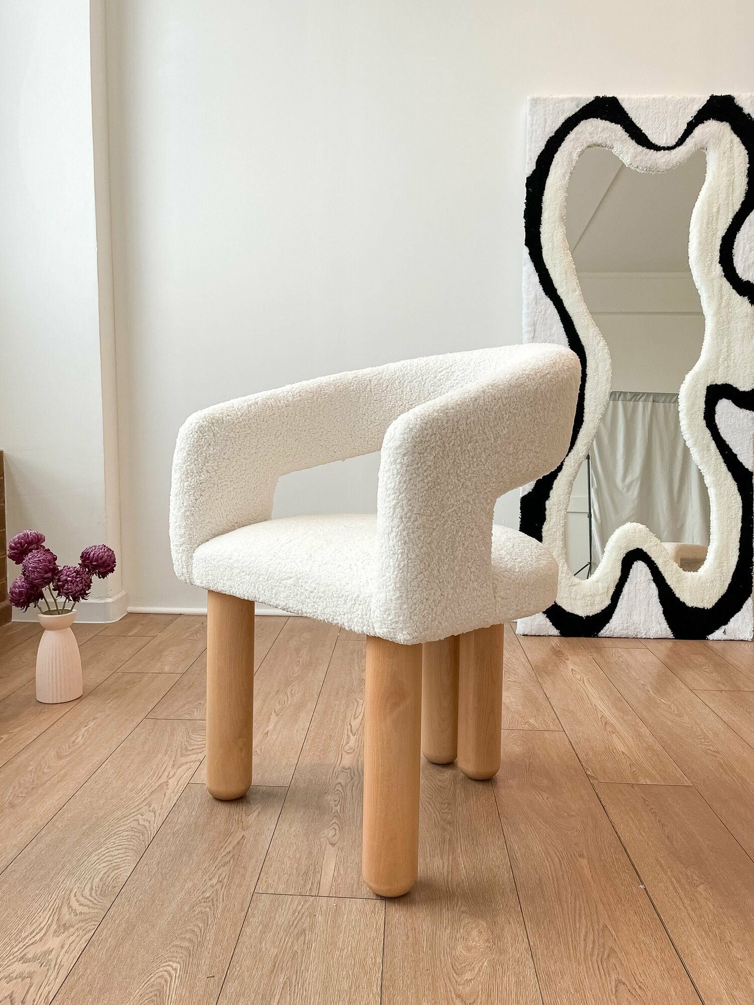 СохранитьСтул кресло PECOLA мягкое со спинкой с подлокотниками на деревянных ножках для отдыха стильный современный в гостиную натуральное дерево искусственный эко мех, овчина, барашек интересное: