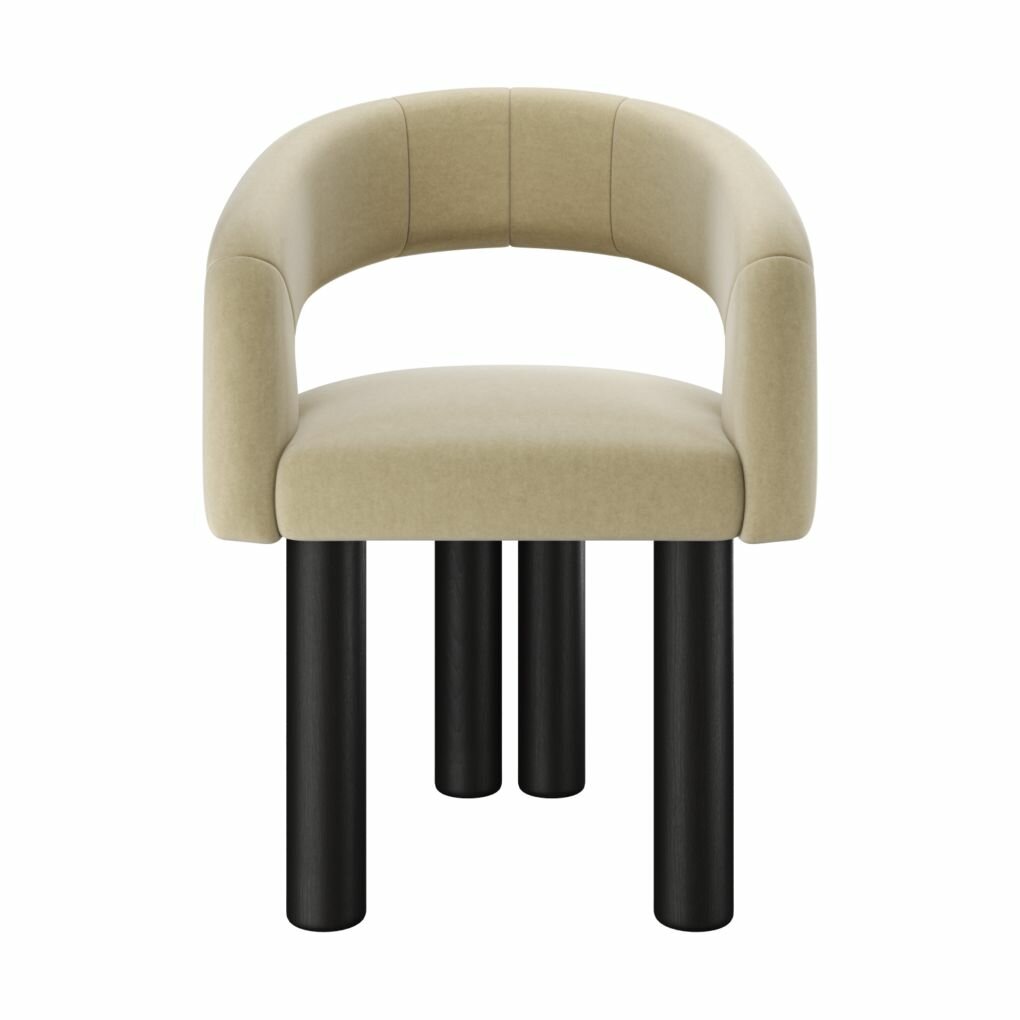 Стул кресло PECOLA мягкое со спинкой с подлокотниками на деревянных ножках для отдыха стильный современный в гостиную в кухню в детскую натуральное дерево букле молочный, ножки тон черный