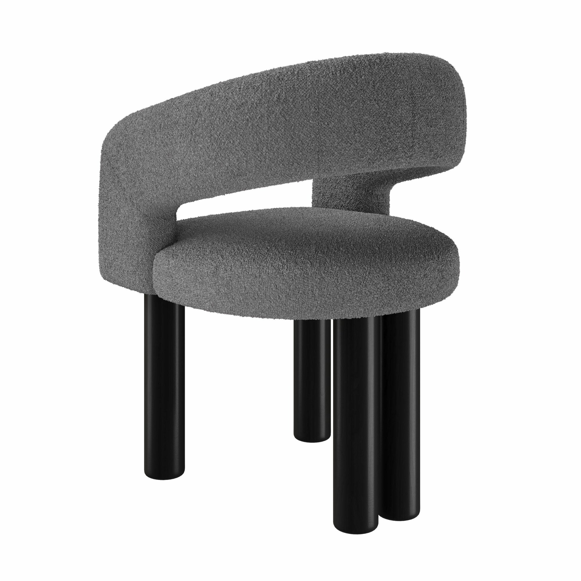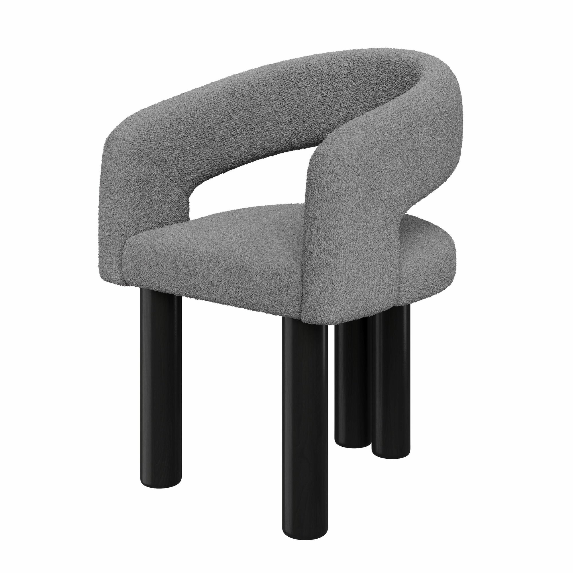 Стул кресло PECOLA мягкое со спинкой с подлокотниками на деревянных ножках для отдыха стильный современный в гостиную в кухню в детскую букле светло-серый латте, ножки тон черный