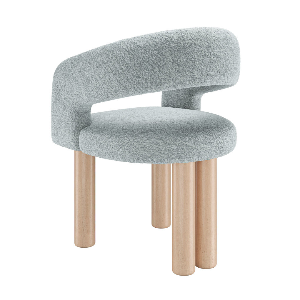 Стул кресло PECOLA мягкое со спинкой с подлокотниками на деревянных ножках для отдыха стильный современный в гостиную в кухню в детскую натуральное дерево букле светло-серый латте