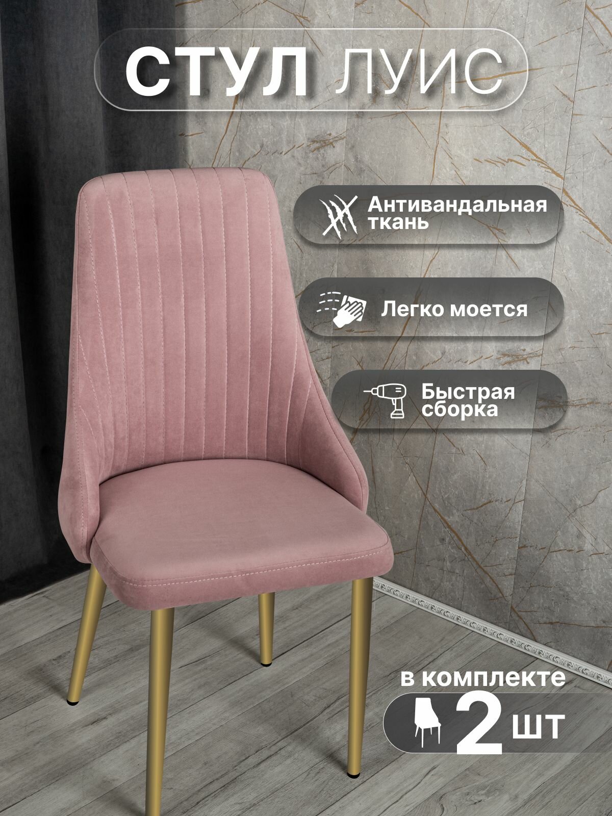 СохранитьСтулья для кухни со спинкой 2 шт, мягкие со спинкой, металлокаркас, «Луис», У Стулыча, розовый, золотистый интересное: