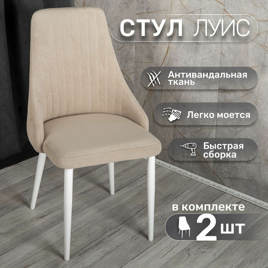 Купить Стулья для кухни со спинкой 2 шт, мягкие со спинкой, металлокаркас, «Луис», У Стулыча, бежевый, белый